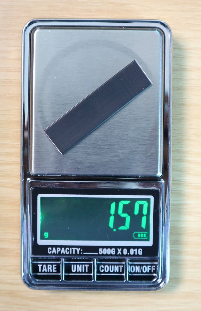 El peso del cable de 5cm es de 1,57G, el peso que incluye el conector y la placa PCB es de 7,45G