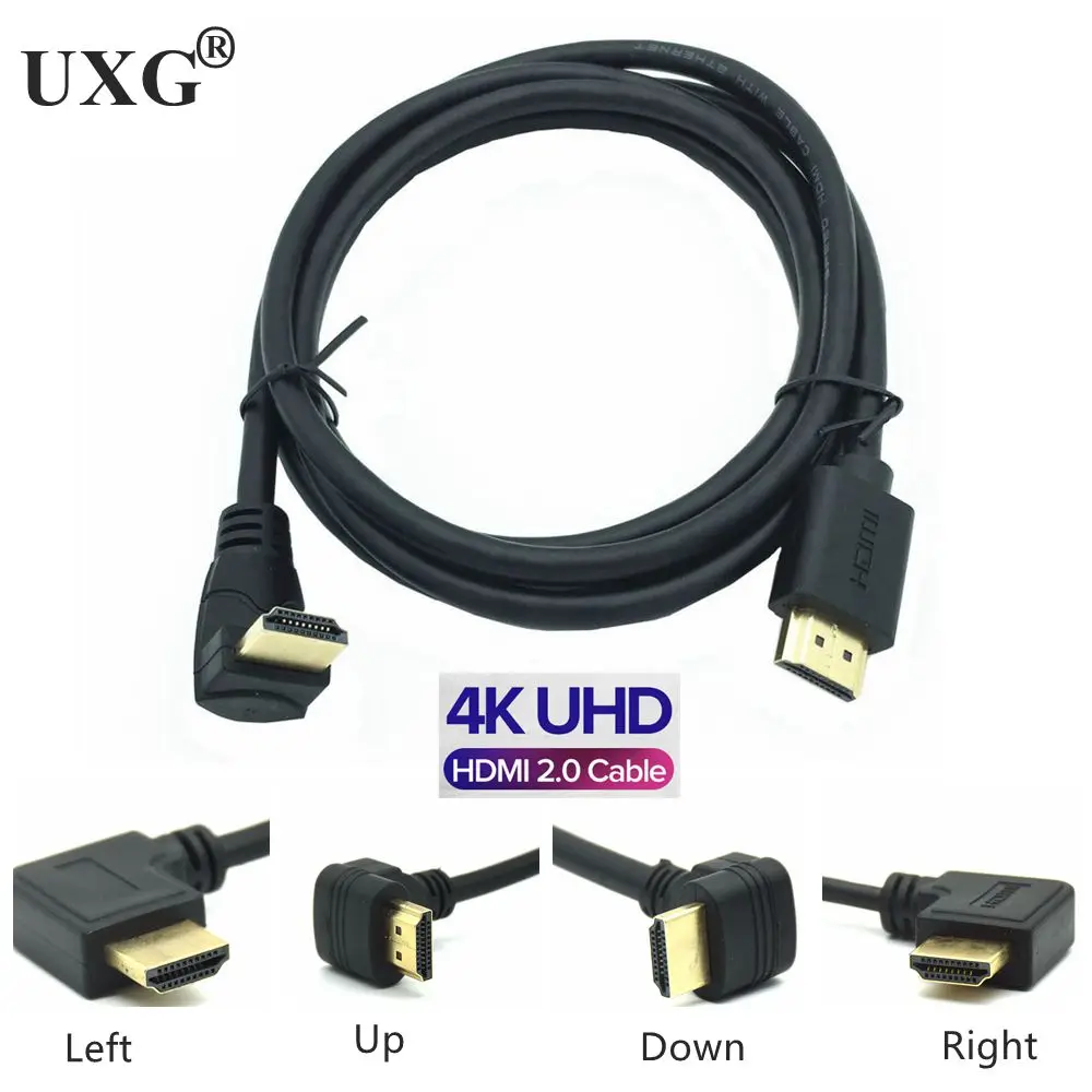 4K * 2K 60HZ HDMI 2,0 A macho a HDMI v2.0 abajo y arriba y ángulo izquierdo y derecho 90 grados macho HD cable de extensión HDMI 2,0 V cable angular