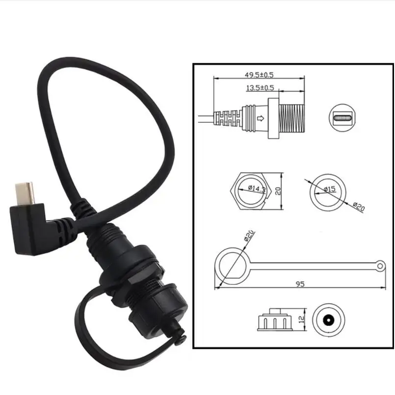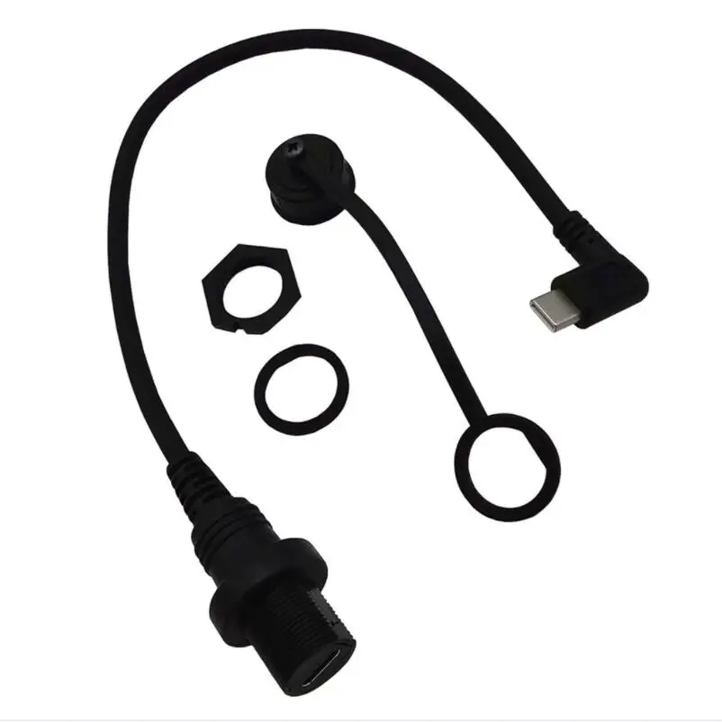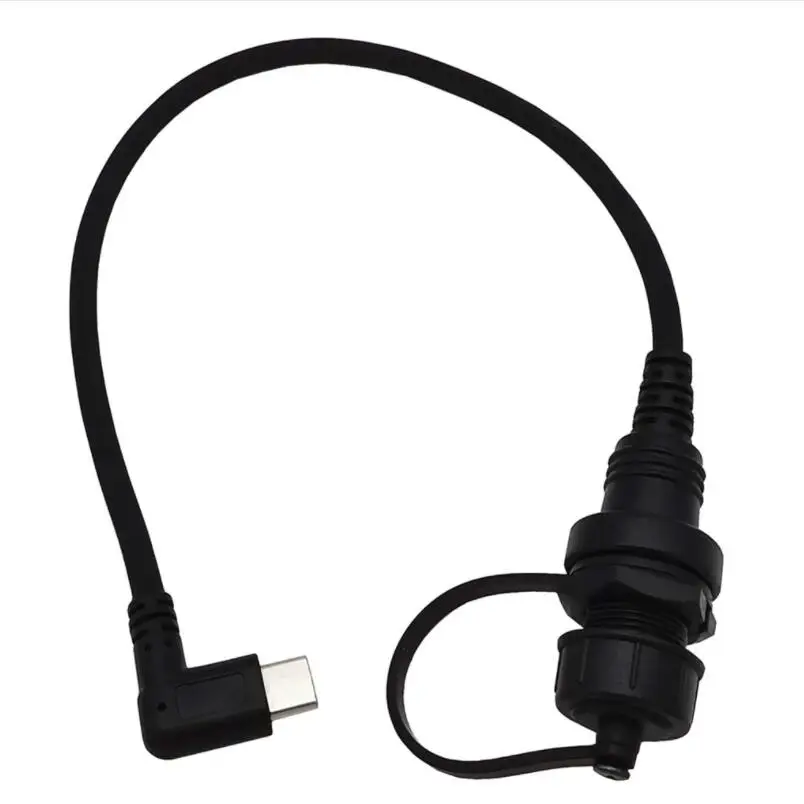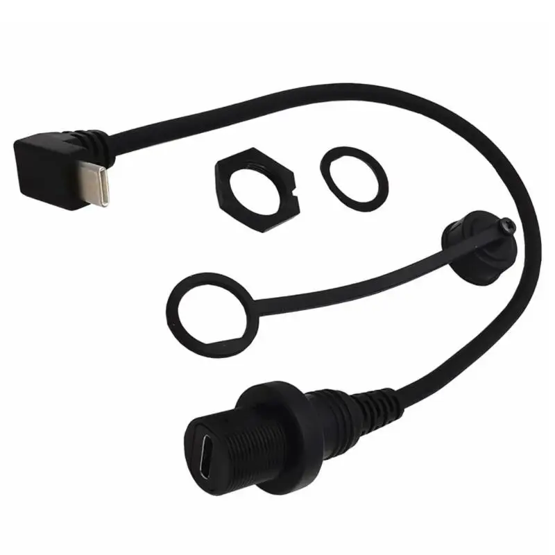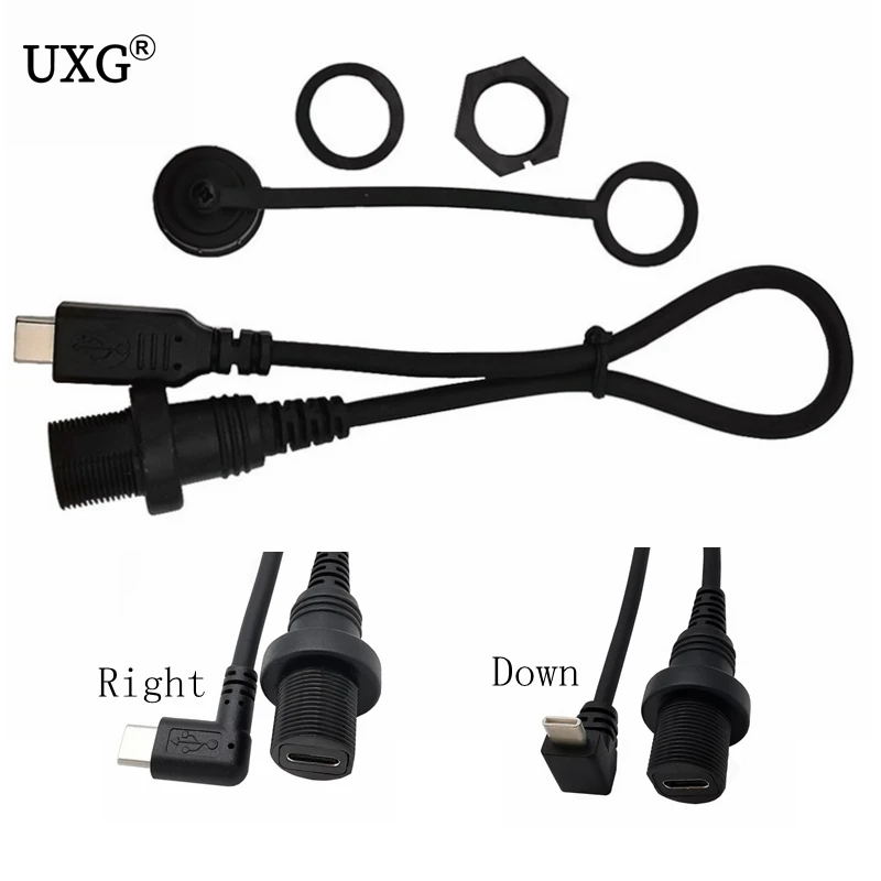Comprar Cable de extensión de conector a prueba de agua, conector de montaje en Panel macho a hembra, 90 grados, USB-C derecho, IP67, impermeable, USB tipo c 3,1, IP 67
