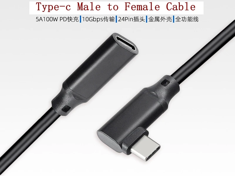Comprar Cable de extensión curvado USB 3,1 tipo C, 100W, PD 5A, 90 grados, 4K, 60Hz, 10gbps, USB-C Gen 2, 5m, para portátil Macbook, ASUS, HP