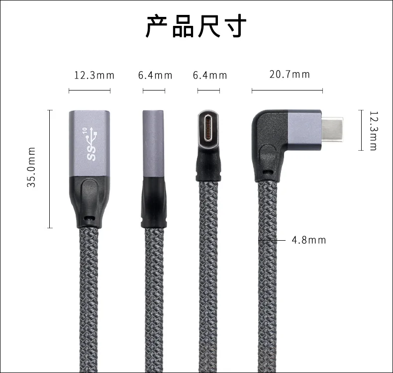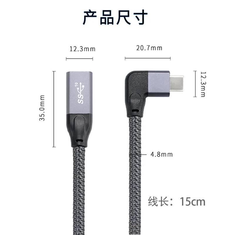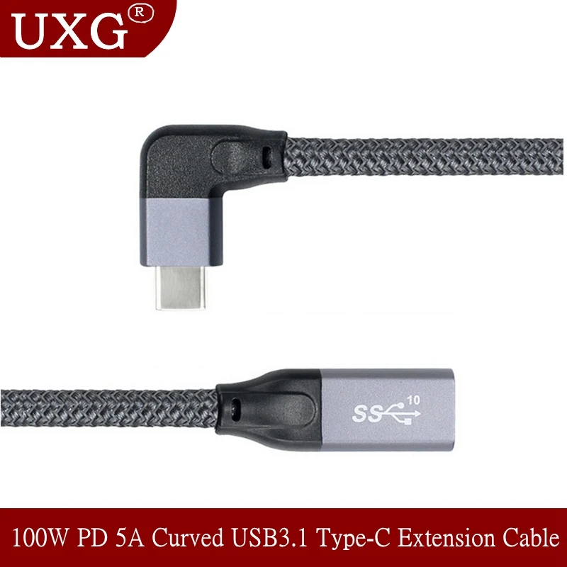 Comprar Cable de extensión curvo USB3.1 tipo C, 100W PD 5A, 4K @ 60Hz, 10gbps, USB-C Gen 2, para VR, Mac, Nintendo, ASUS, HP, portátil, 1M