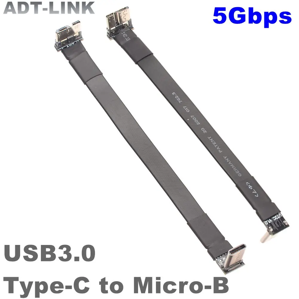 Comprar Cable de extensión de datos interno USB 3,0 tipo C a micro-b, Micro USB tipo C macho a macho, adaptador USB macho a hembra con ángulo de 90 grados