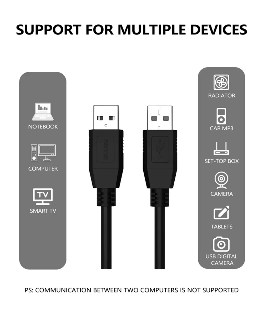 Comprar Cable de extensión de datos USB 2,0 macho a macho, 480mbps0.5m, 1m, 3m, decodificador de carga para Notebook, Cable de transferencia de archivos USB