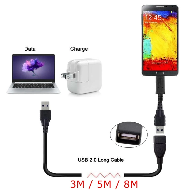 Cable de extensión de datos 8m 5m 3m USB tipo-a hembra A USB 2,0 macho para disco duro y escáner e impresora