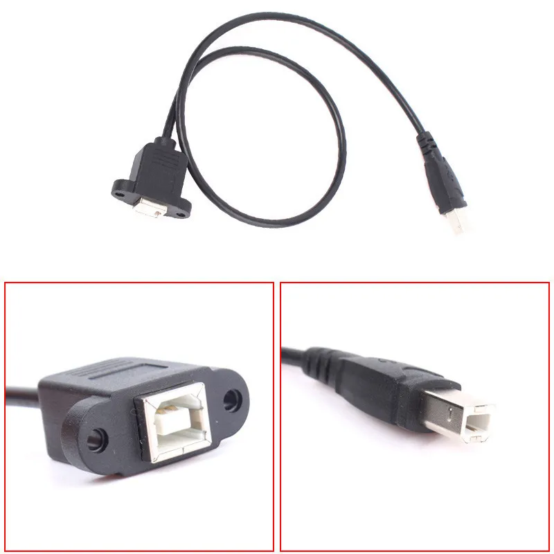 Comprar Cable de extensión de datos USB 2,0 tipo B macho a hembra M/F, montaje en Panel para impresora con agujero de tornillo de 0,3 m /1 pie