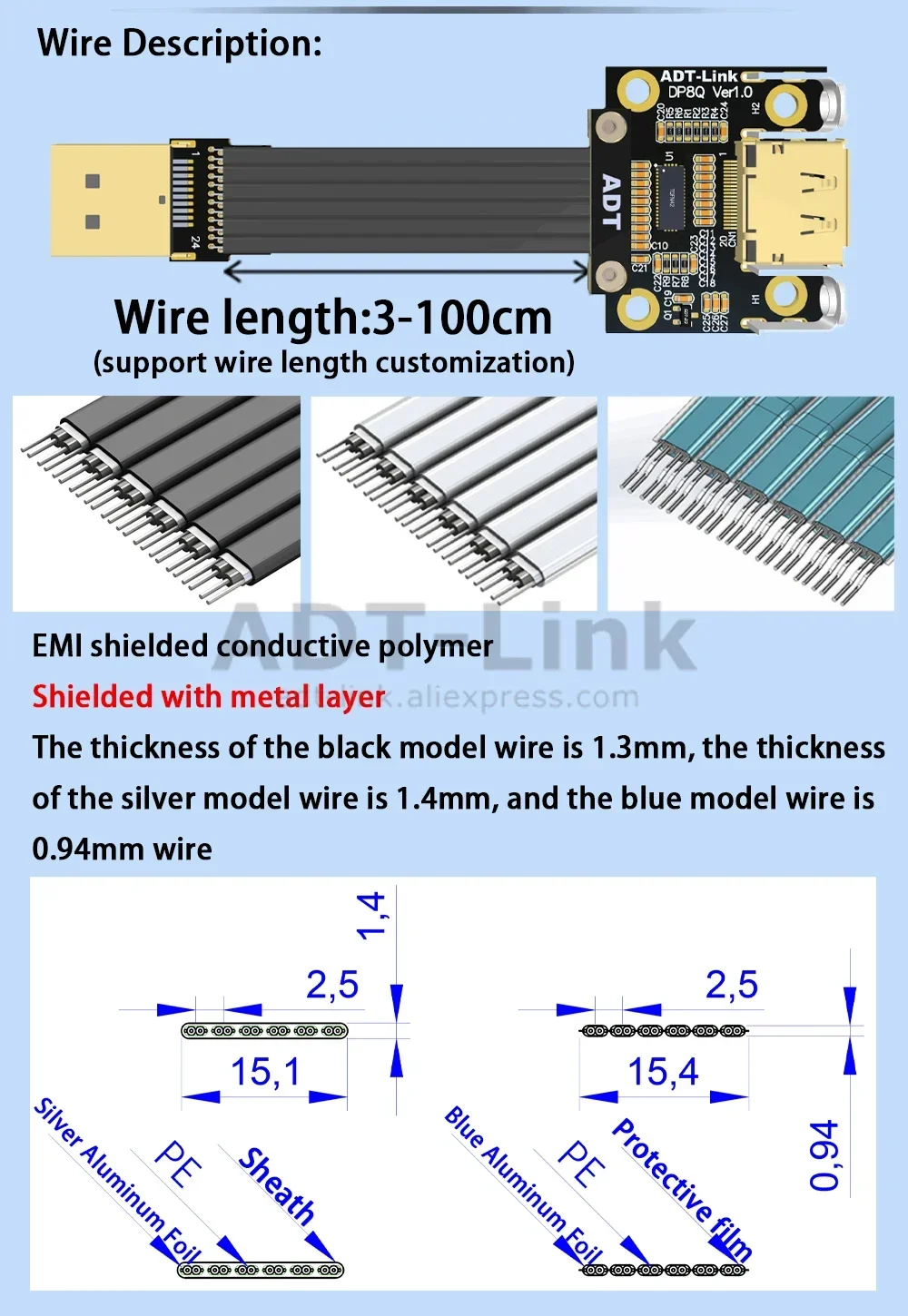 Comprar Cable de extensión DisplayPort a Mini DisplayPort de 8K en ángulo arriba y abajo, Cable plano macho a hembra, compatible con HDR/DSC para Monitor de ordenador portátil