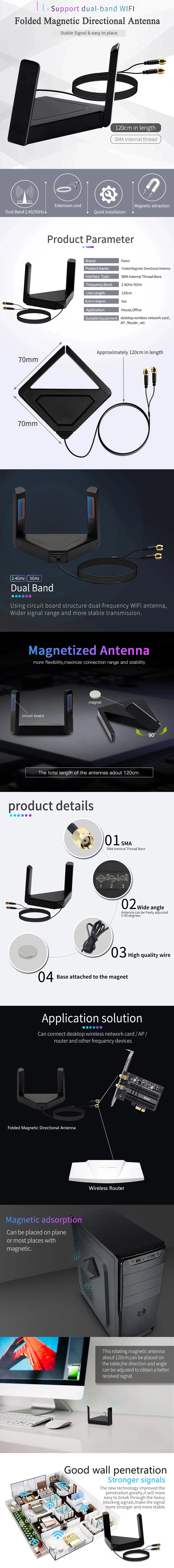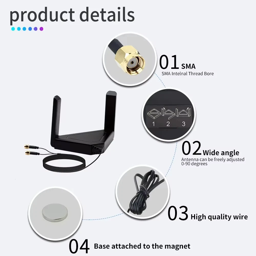 Cable de extensión de doble banda, antena PCI-E de 2,4G/5GHz, adaptador WiFi de escritorio, antena magnética giratoria externa RP SMA para enrutador AX210