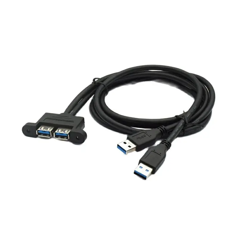 Comprar Cable de extensión de doble puerto USB 3,0 macho a doble USB 3,0 hembra, Cable de Panel macho a hembra, deflector, 0,3 m, 0,5 m, 1m, 1,5