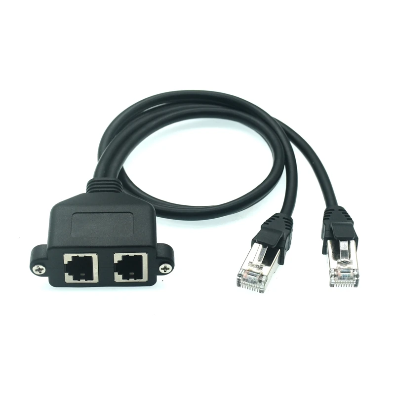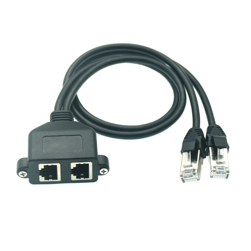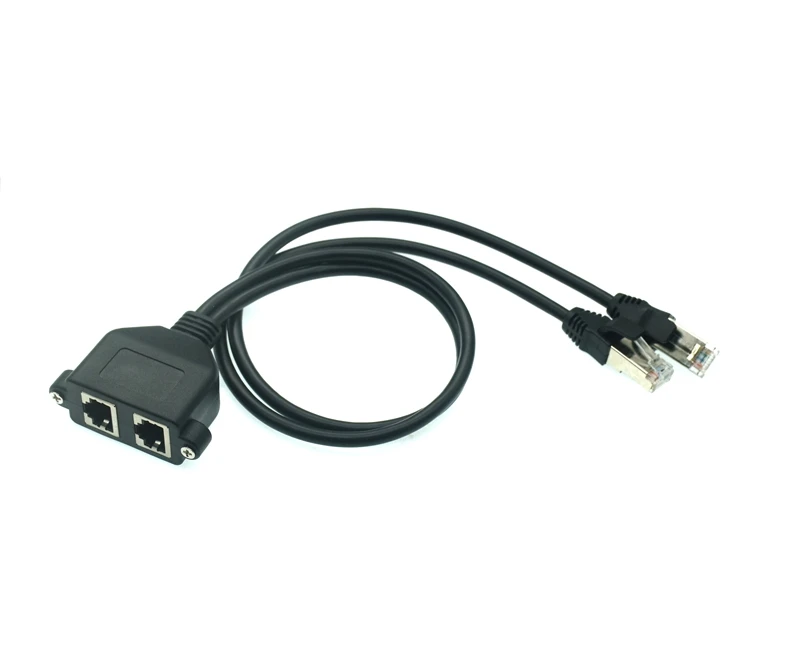 Comprar Cable de extensión doble RJ45 RJ45 macho a hembra tornillo montaje en Panel extensión de red LAN Ethernet Cate5/6 Cables 50cm