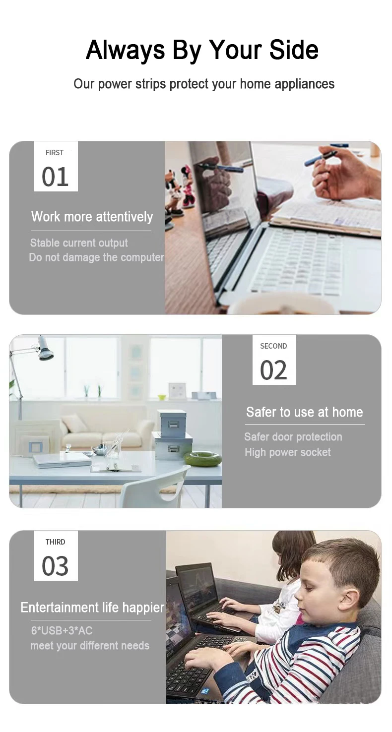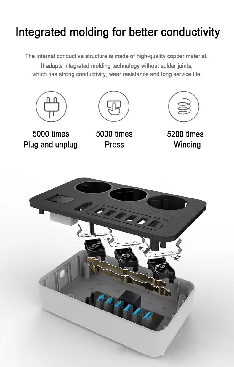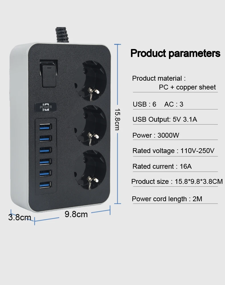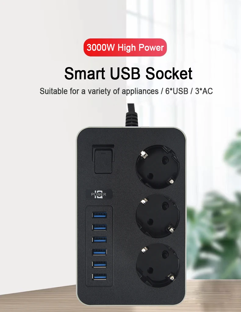 Cable de extensión para el hogar inteligente, toma de corriente de CA con puertos USB, filtro de red de carga rápida, enchufe europeo