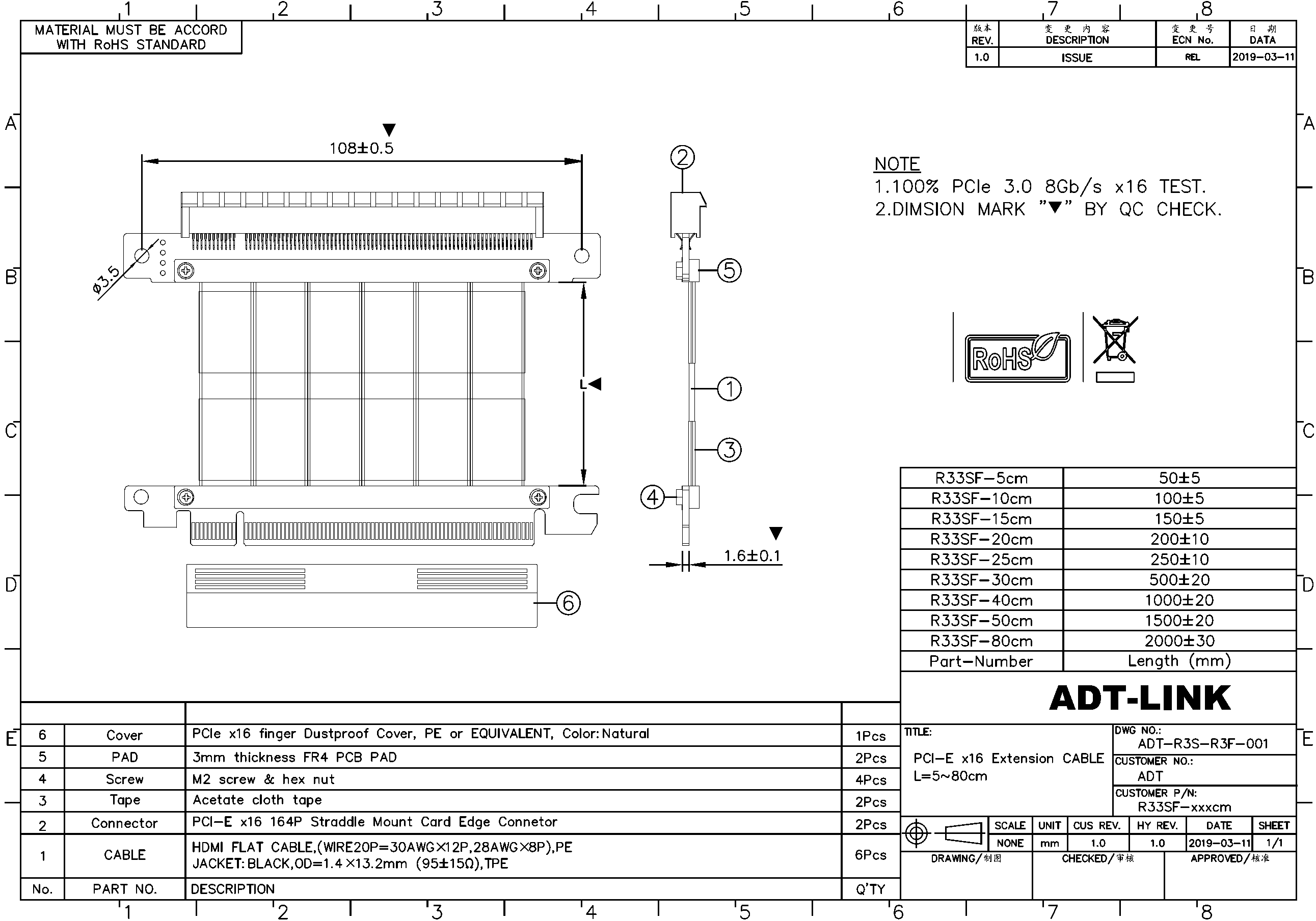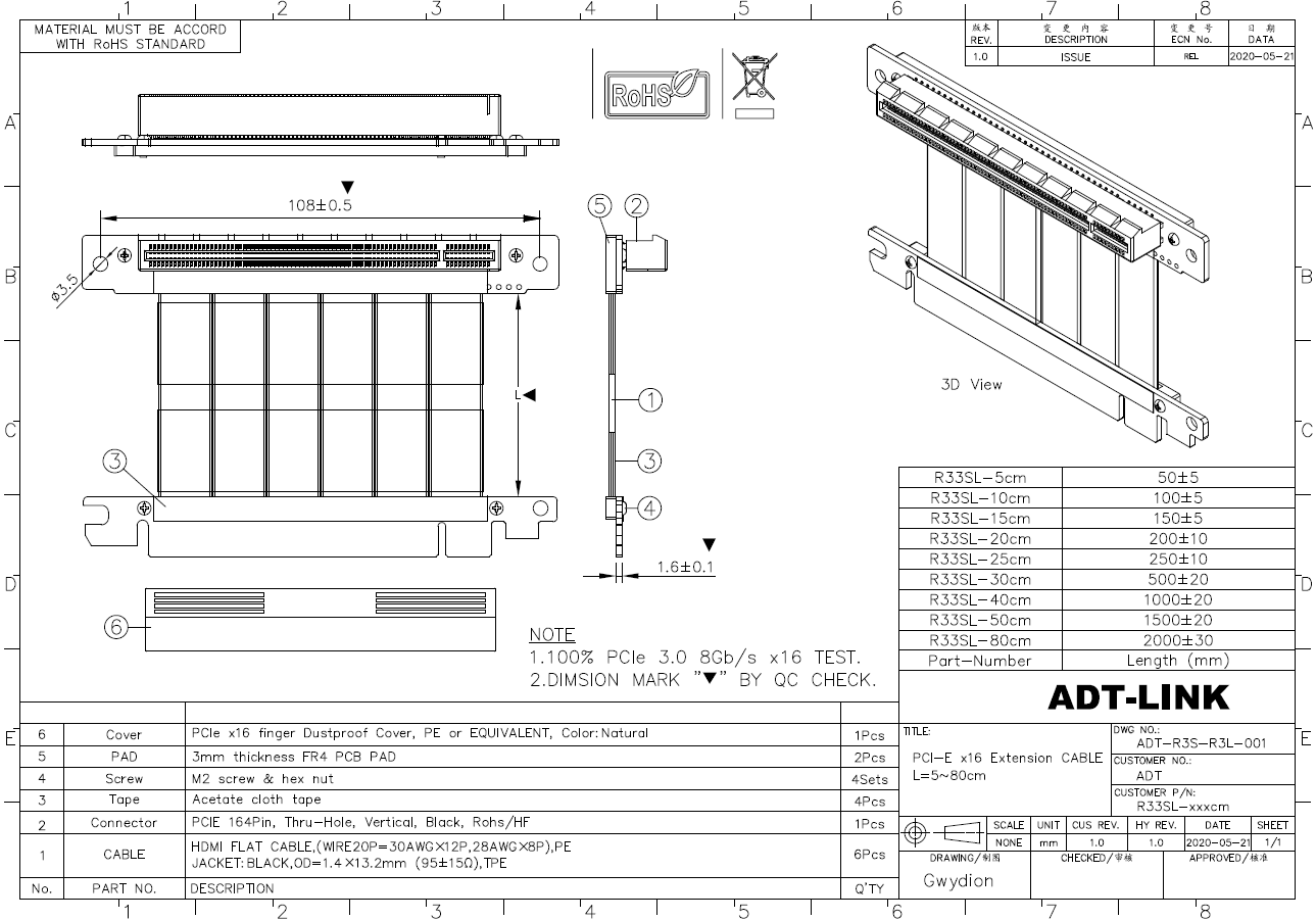 Nombre del producto: cable de extensión PCIe x16 a x16