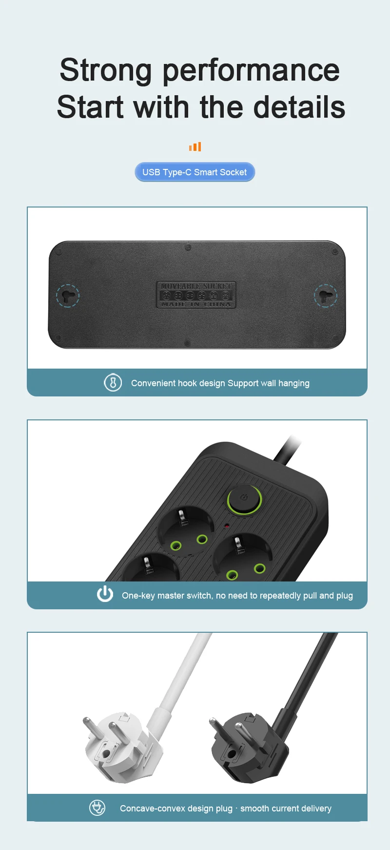 Más fácil de usar colgando el enchufe en la pared, más ahorro de espacio;