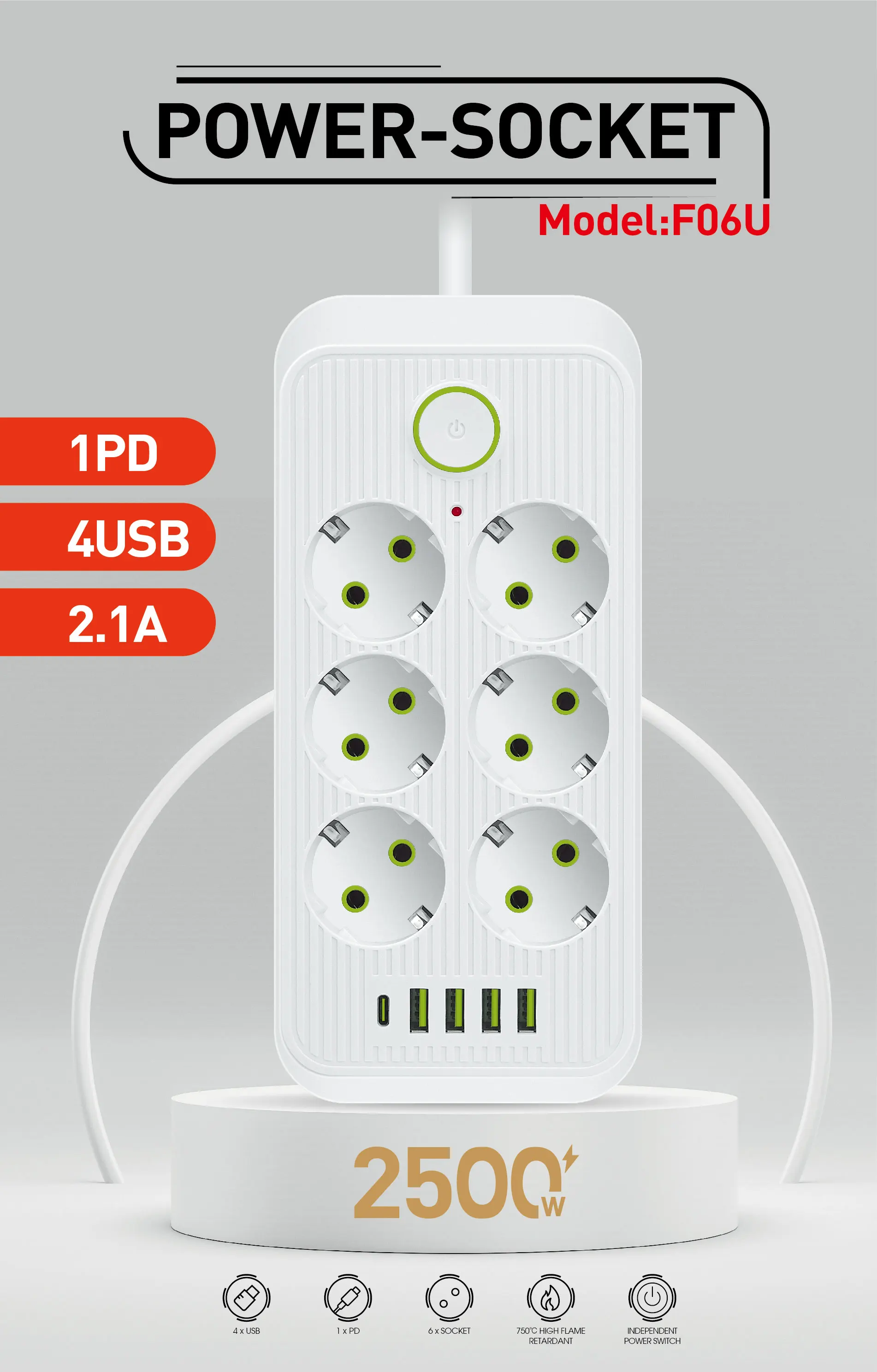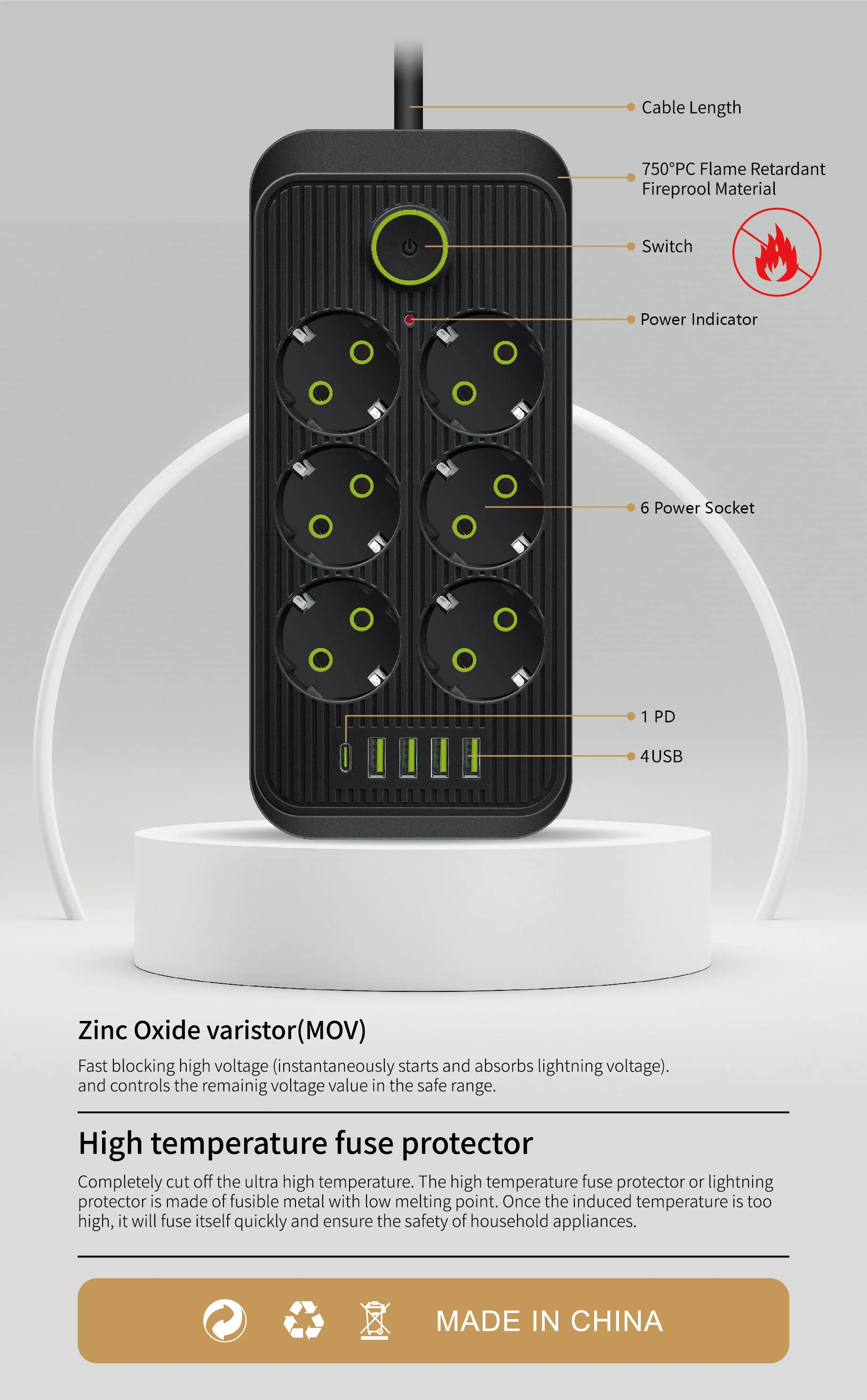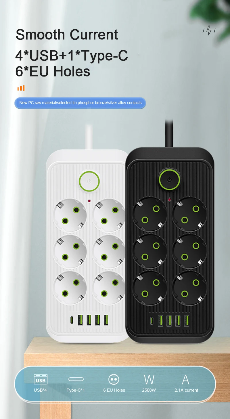 Enchufe de extensión para el hogar: enchufe de oficina con enchufe/regleta de Alimentación inteligente (UE)