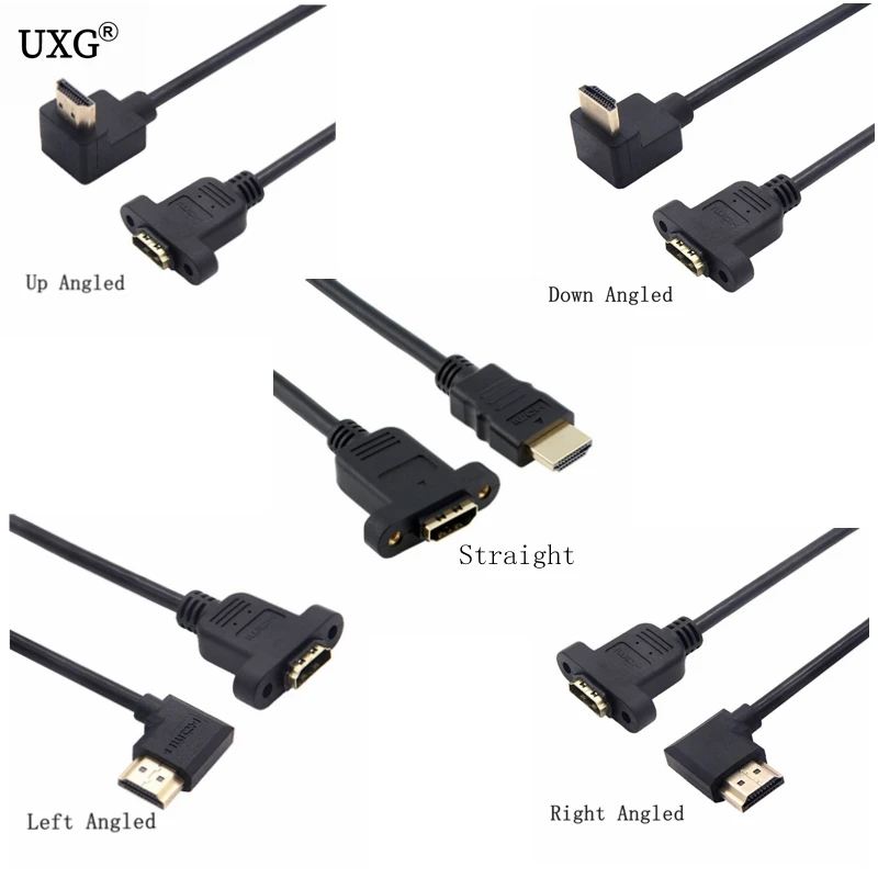 Conector de montaje en Panel HDMI de ángulo recto de 90 grados compatible con HDMI, Cable de extensión macho a hembra, tornillo, Cable de conector de Panel HDMI