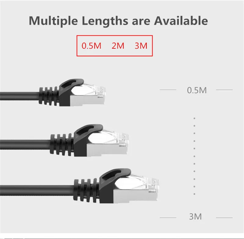 Especificación del cable: ... Enchufe de categoría 6, 8P/8C (RJ45), contacto chapado en oro de 50U Cable en FTP blindado 4P * 26AWG(7/0.16BC)+ AL-FOIL + drenaje + chaqueta ... Cable OD (dimensión total) de 6,2mm, color negro ... Ancho de banda de hasta 250Mhz ... Velocidad de hasta 1000Mbps