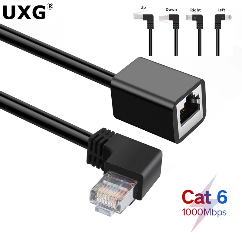 Comprar Cable de extensión Ethernet Cat6 Rj45 Cat6 5, Cable de red Lan macho a hembra RJ45, 90 grados, derecha hacia arriba, Anlge para PC y portátil