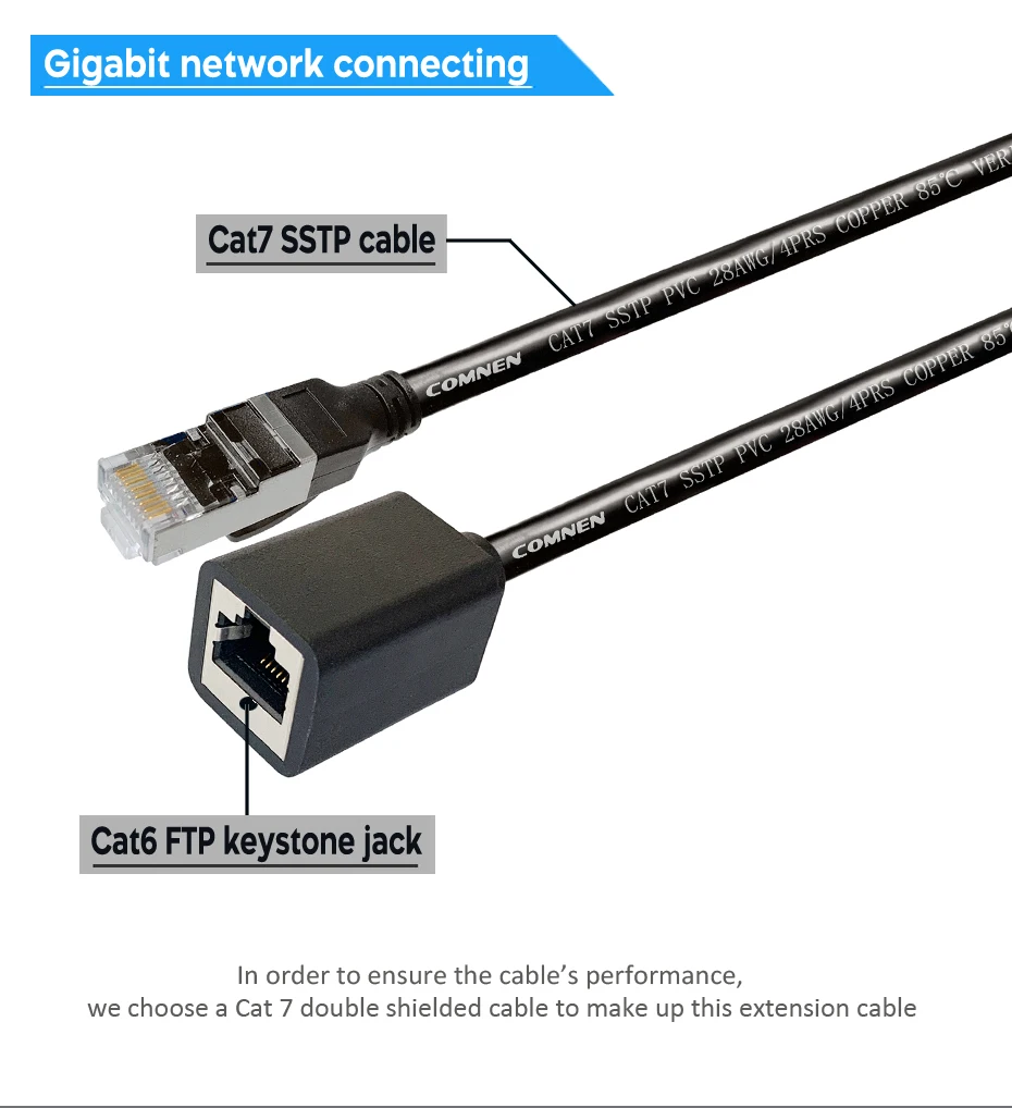 Thank you for choosing COMNEN's Ethernet male to female extension cable. If any question, welcome to contact us, we have more than 10 years experience in Ethernet cables design and production.