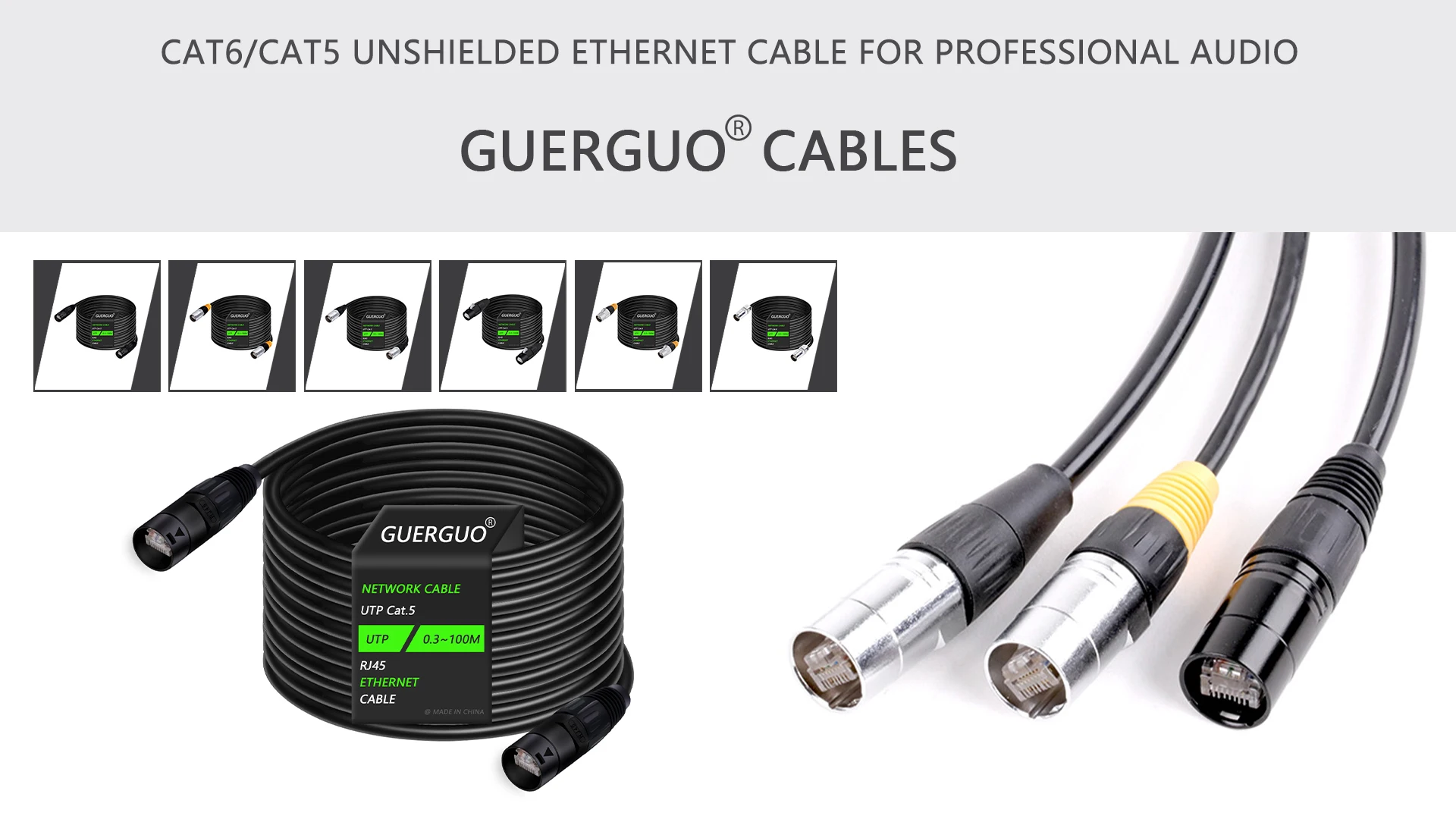 Cat5/Cat6 Ethernet Extension Cable Outdoor&Indoor LAN Network Cable with Zinc Alloy RJ45 Male Connector for LED Stage 0.3M-100M