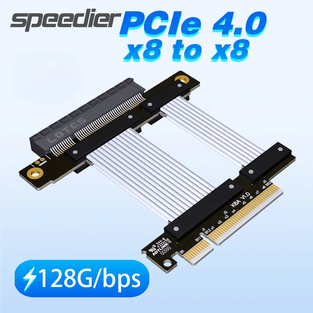(2023 nuevo tipo)PCIe 4,0x8K88SLCables de extensión de ángulo recto vertical PCI-E x8 a X8 con giro de 90 grados(2023 nuevo tipo)PCIe 4,0x8K88ABCables de extensión vertical de férula PCI-E x8 a X8 con giro de 180 grados (cables duales)