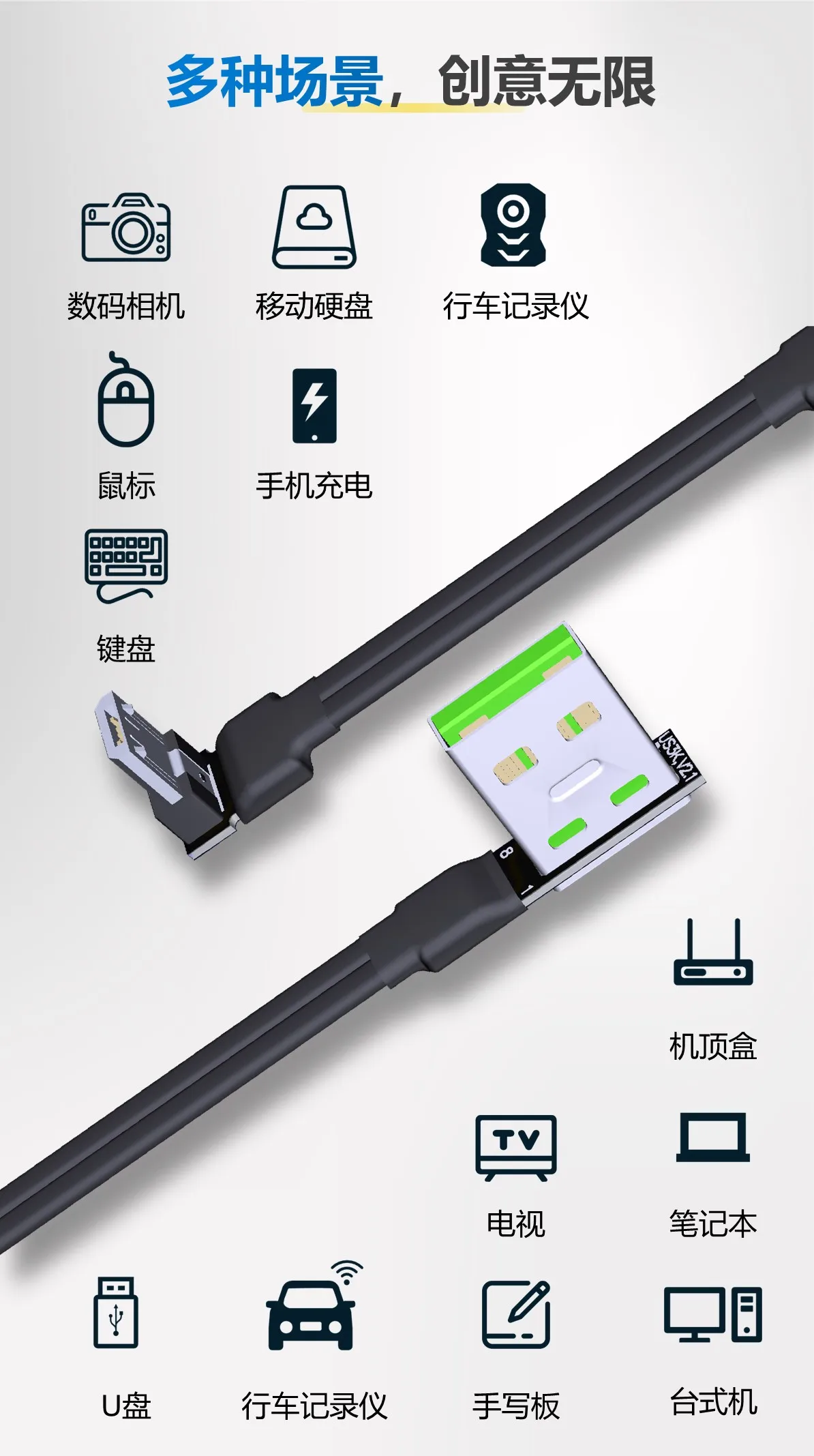 Nombre del producto: cable plano USB 2,0 tipo A macho a Micro-B macho OTG