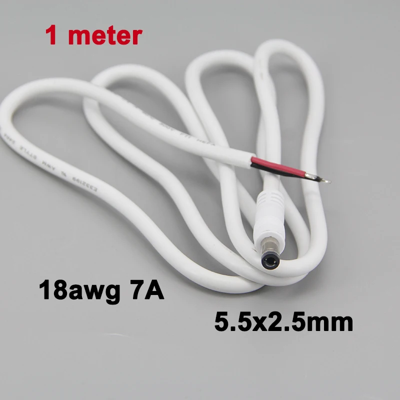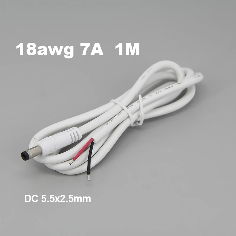 Comprar Cable de extensión de fuente de alimentación de 5,5x2,5mm, 18awg, 7A, corriente CC, enchufe macho, Cable de 1M para cámara cctv