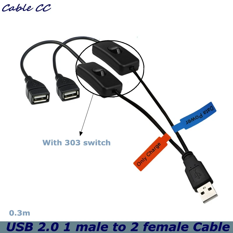 USB uno a dos tipo Y con cable de extensión de fuente de alimentación conmutada 303 con AMAF con cable controlador de interruptor 0,3 metros;