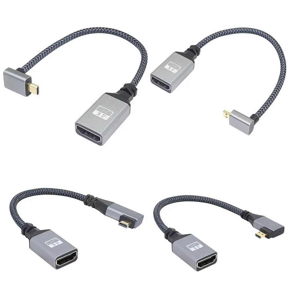 Cable de extensión HD 4K @ 60Hz Micro HDMI 2,0 macho a hembra compatible con HDMI, 0,2 M recto/izquierdo/Derecho/arriba/abajo para cámara inteligente HDTV