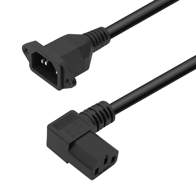 Comprar Cable de extensión IEC320 C14 a C13, C14 con orificios para tornillos y C13, ángulo derecho e izquierdo corto, 30cm, 60cm de longitud