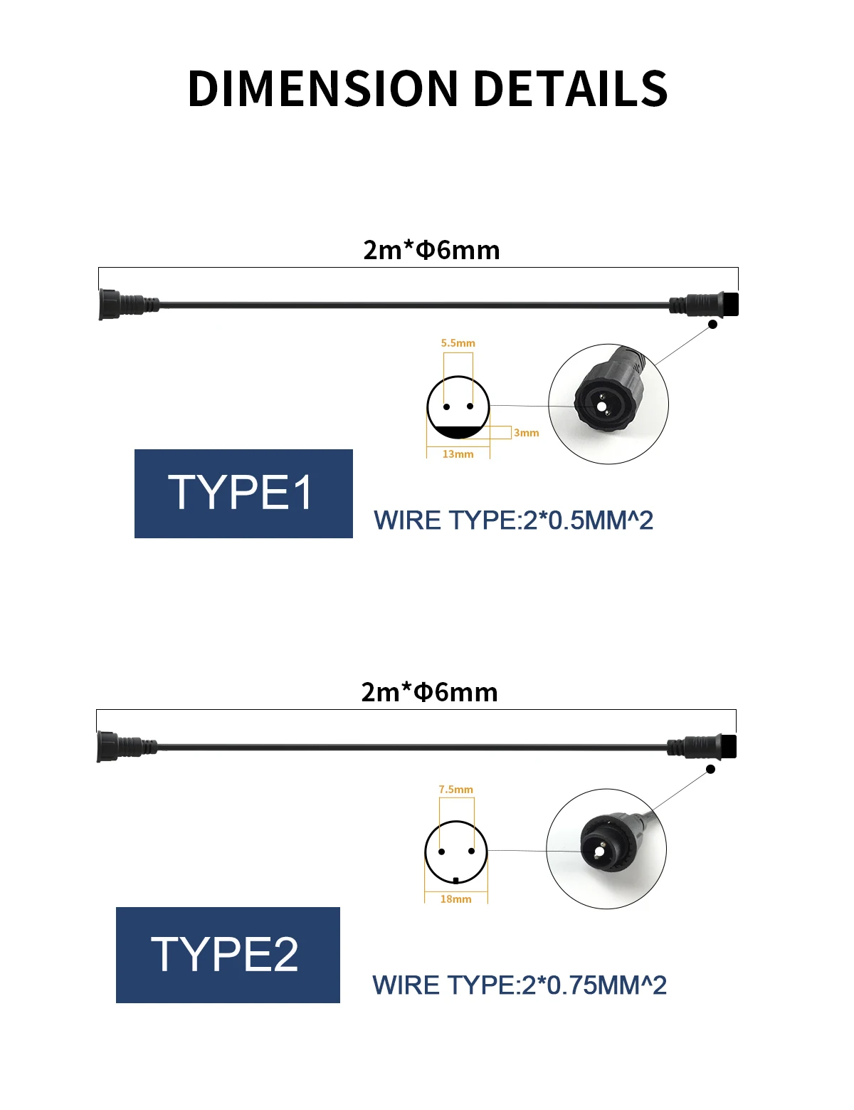 Amplia aplicación: este cable de extensión es muy adecuado para luces de jardín, iluminación de caminos, focos LED para paisajes, luces de cadena para exteriores.