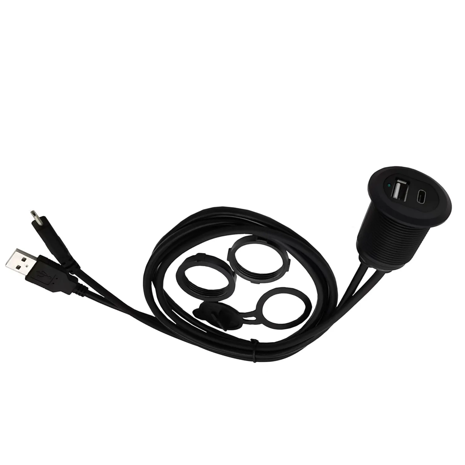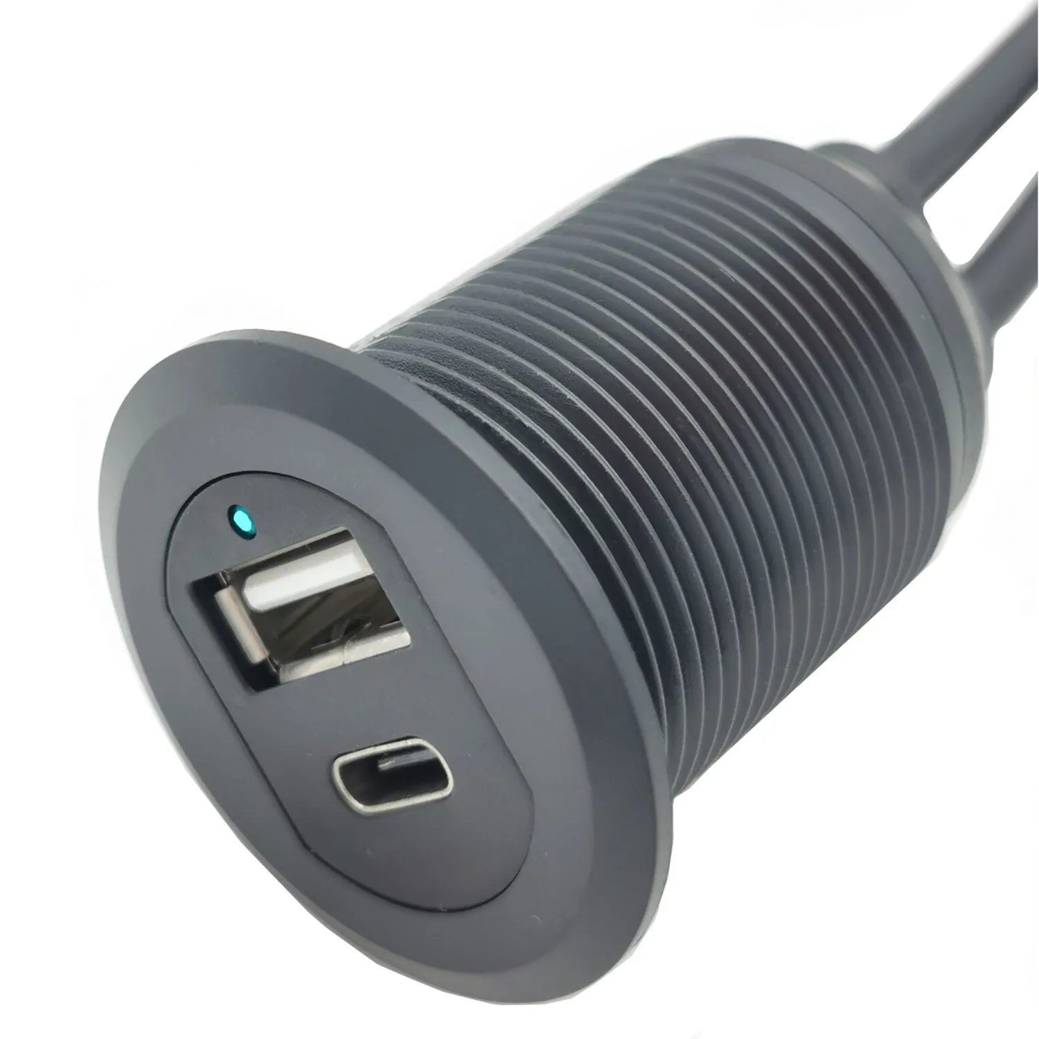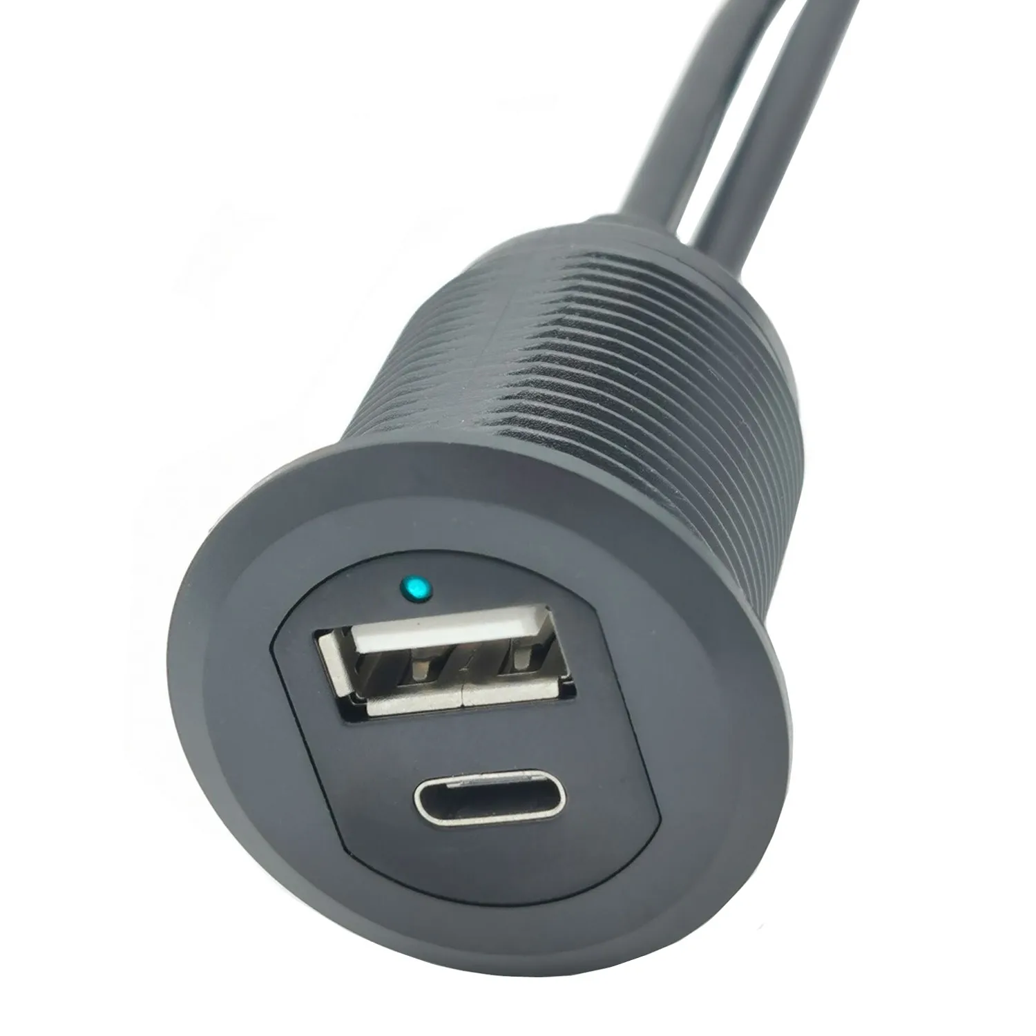Aplicable a: salpicaderos de automóviles, barcos, motocicletas y otros equipos. Cargue la transmisión de datos de teléfonos móviles o tabletas con interfaz tipo C 3,1; Habrá un orificio adecuado en cada producto, para que el cable se pueda conectar al salpicadero del coche o la motocicleta a través del soporte;