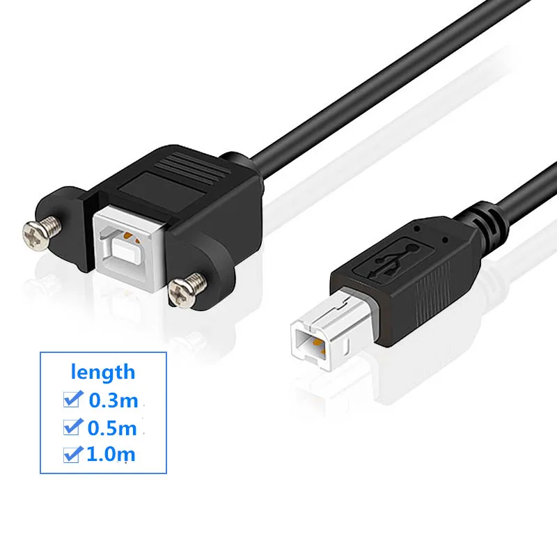 Comprar Cable de extensión de impresora USB 2,0 tipo B macho a tipo B hembra, con agujero de tornillo de montaje en Panel, 30cm, 50cm, 100cm, 150cm