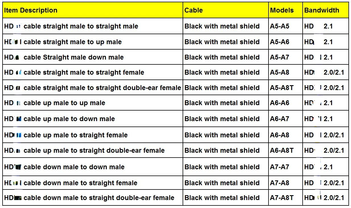 Nota 1:HA5 ~ HA8 son cables blindados. Además del uso de polímero conductor de blindaje EMI, la señal diferencial utiliza blindaje metálico de papel de aluminio, y el cable con blindaje metálico tiene una mejor capacidad antiinterferencia. Reduce significativamente los problemas como la pantalla de bienvenida y la pantalla negra