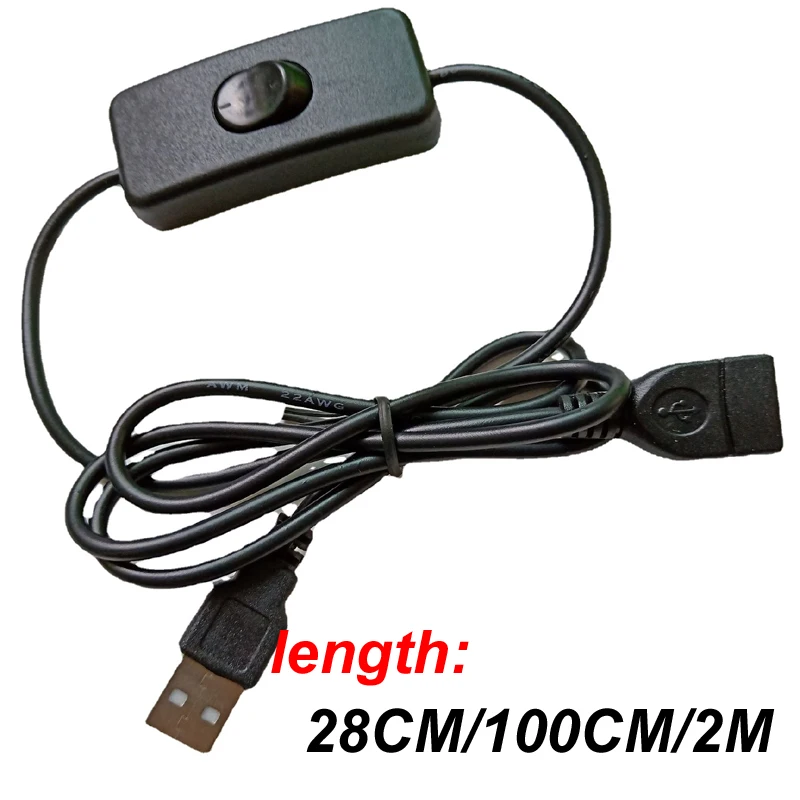Cable de extensión de interruptor USB de 28CM/100CM/2M, compatible con transmisión de datos y fuente de alimentación con interruptor de encendido/apagado para tiras de LED, dispositivos USB