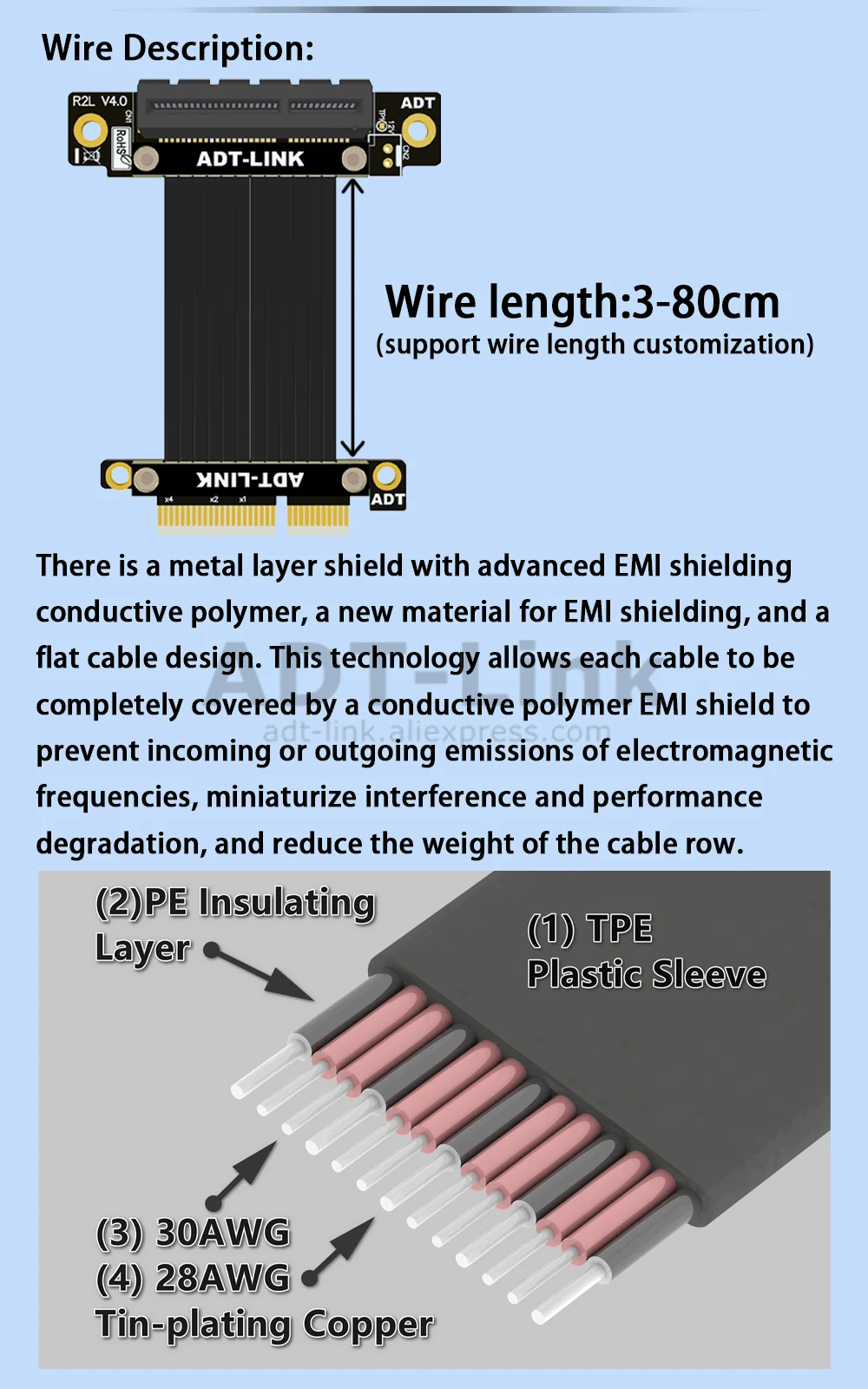 Restricciones de uso: PCIe 4,0 tiene altos requisitos en el equipo. Mientras el cable de extensión esté conectado, la señal se atenuará. Este producto no garantiza la velocidad completa de PCI-E 4,0. El equipo está envejecido. Si la señal es pobre o el ambiente no es bueno, por favor reduzca la velocidad a PCIe 3,0 o inferior.