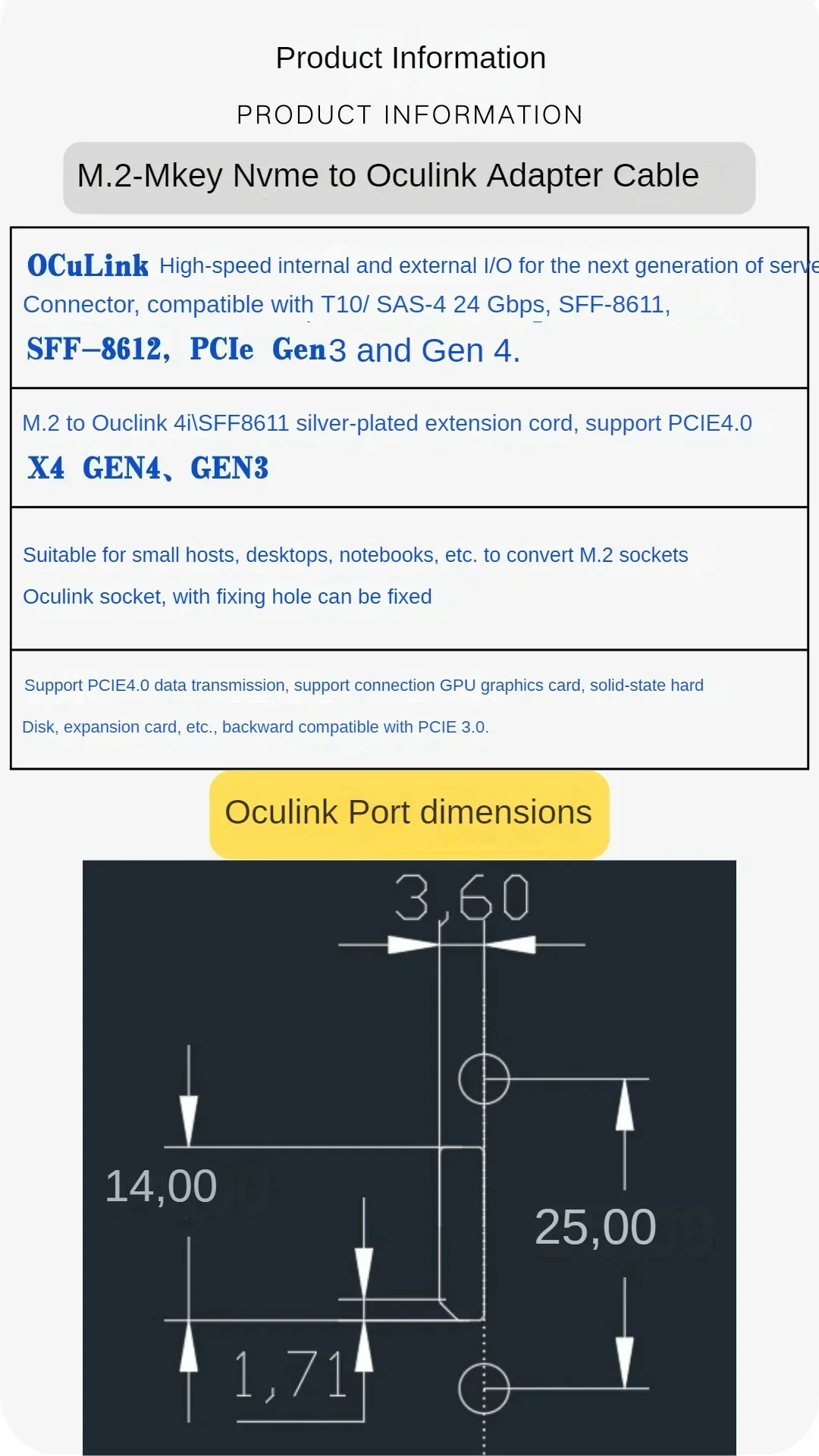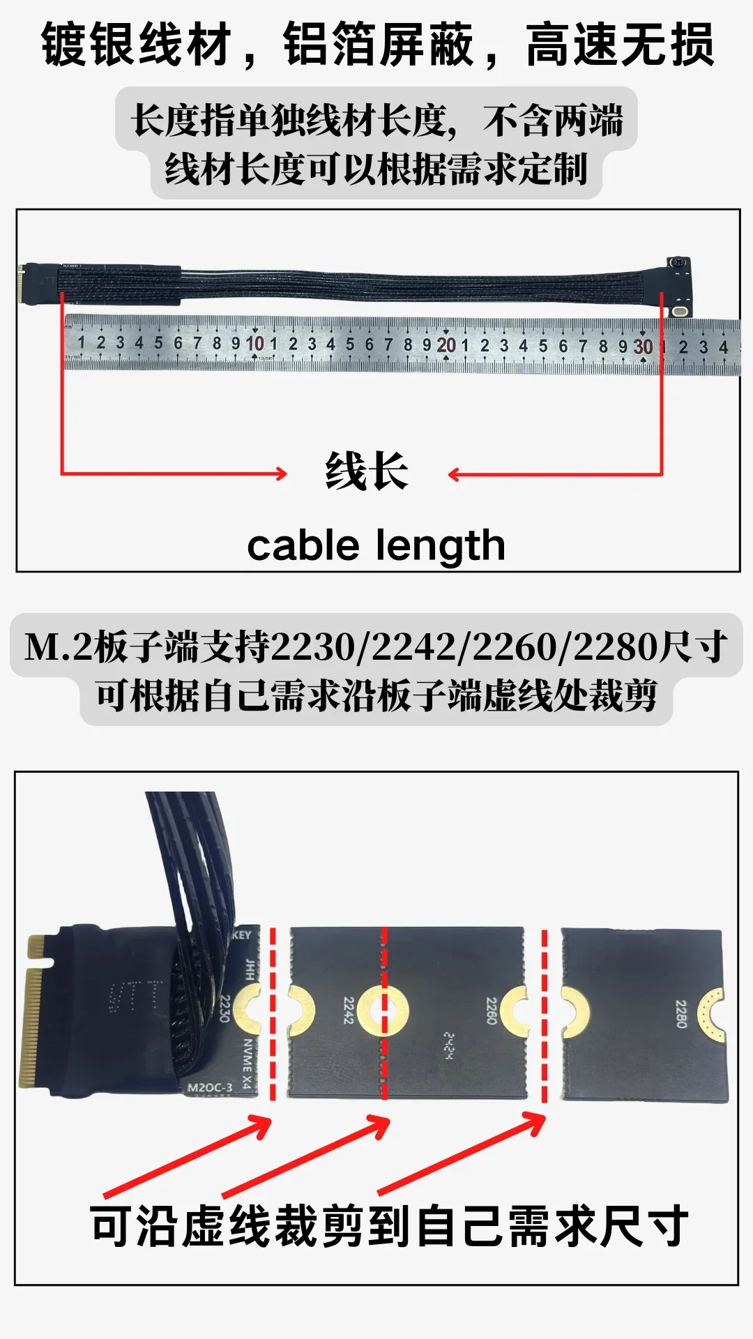 2.Cable de extensión plateado M.2 a Ouclink 4i\SFF8611, compatible con PCIE 4.0X4 GEN4, GEN3.