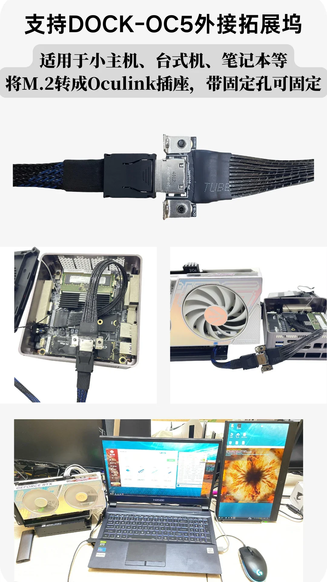 3.Adecuado para mainframes pequeños, computadoras de escritorio, portátiles, etc.El casquillo M.2 en casquillo Oculink, con orificios fijos se pueden fijar.