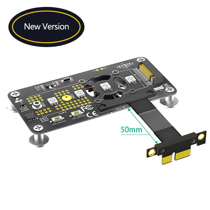 Comprar Cable de extensión M.2 NVME m-key a PCI Express 3,0 X1, tarjeta elevadora con ventilador de refrigeración, almohadilla magnética LED RGB para SSD NVME 2230-2280, 5CM
