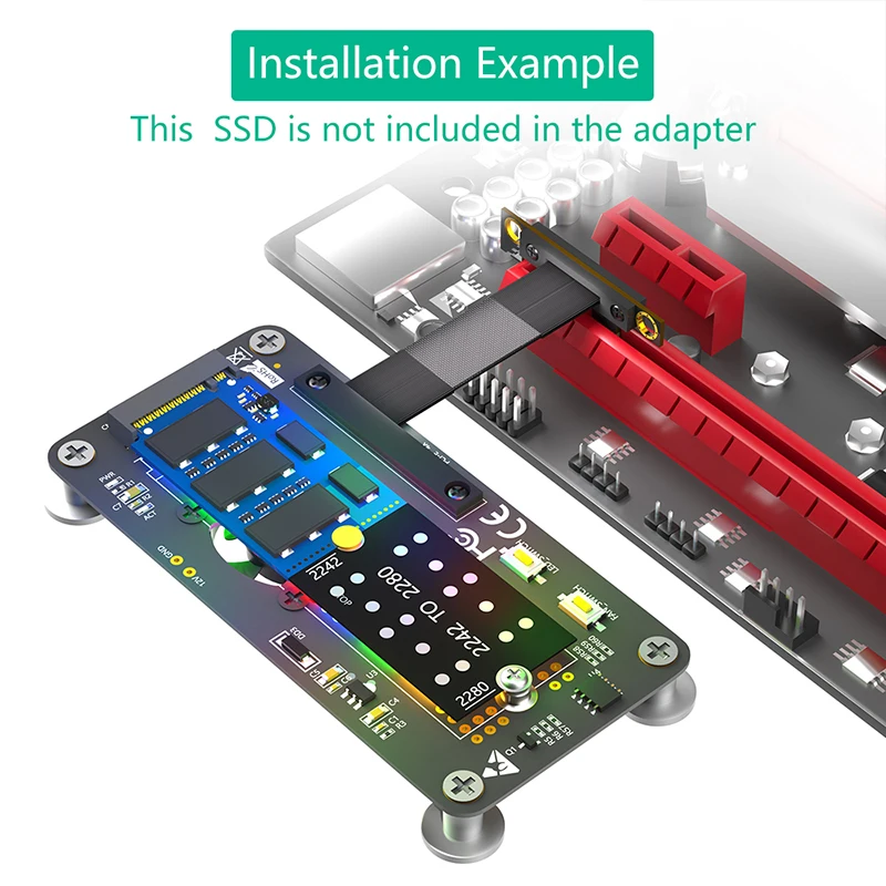 Cable de extensión M.2 NVME a PCIE X1 de 10CM, placa elevadora convertidora de llave PCI Express 3.0 1X a M con ventilador de refrigeración, almohadilla magnética LED RGB