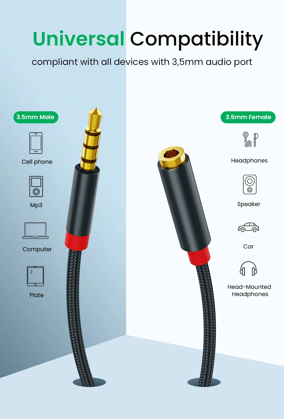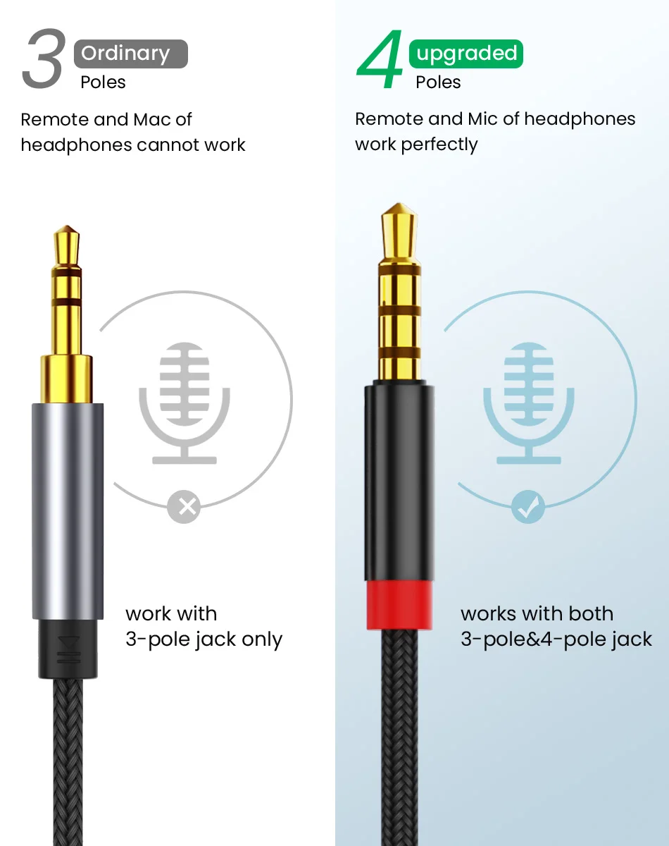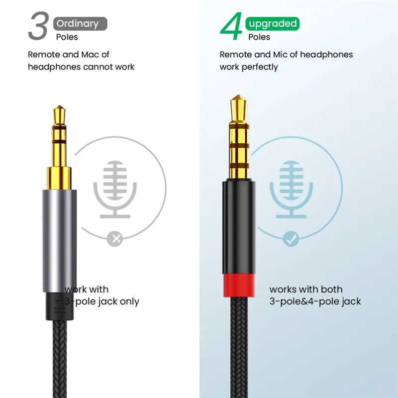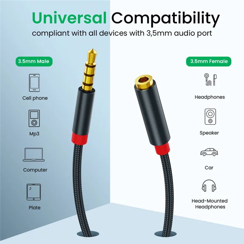 Cable de extensión macho a hembra de Audio auxiliar con conector de 3,5mm, adaptador de Audio estéreo 3,5 con micrófono, Compatible con auriculares de PC