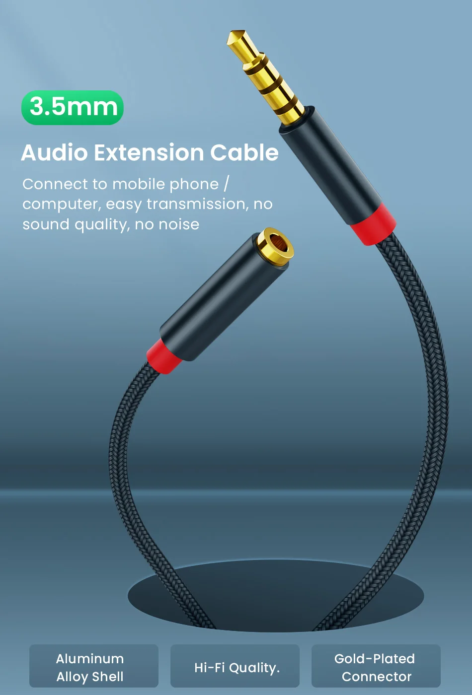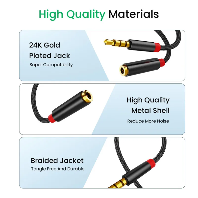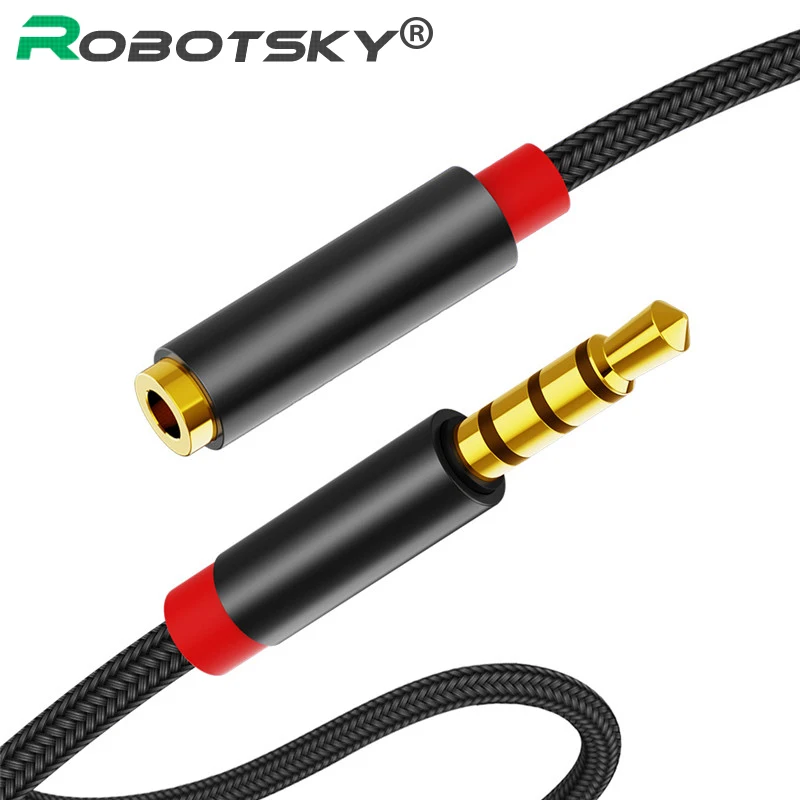 Comprar Cable de extensión macho a hembra de Audio auxiliar con conector de 3,5mm, adaptador de Audio estéreo 3,5 con micrófono, Compatible con auriculares de PC