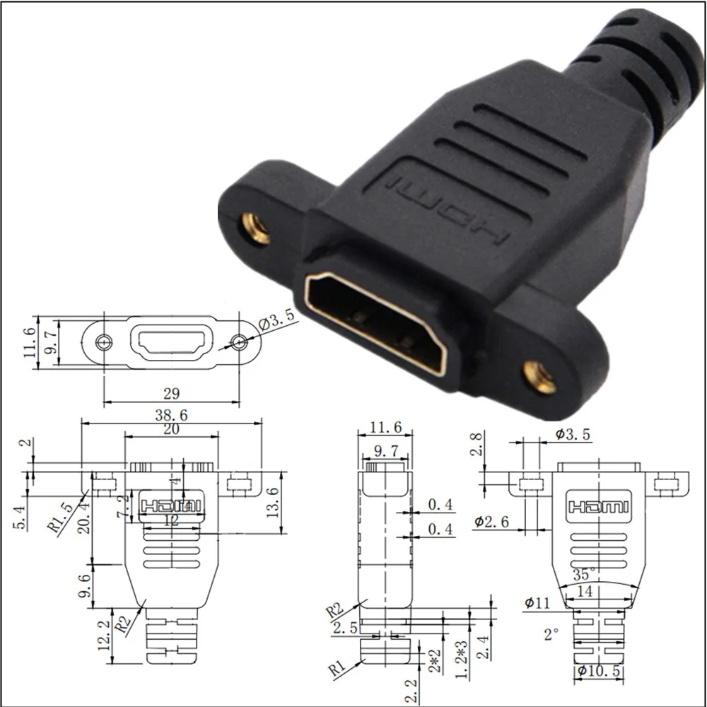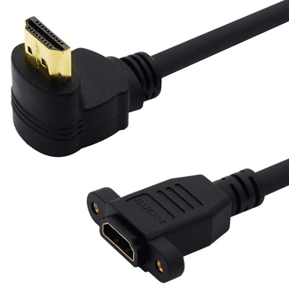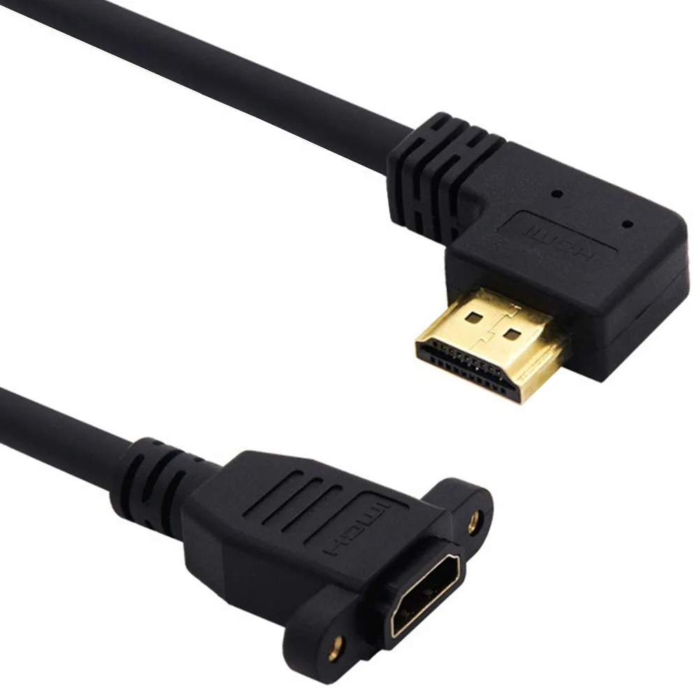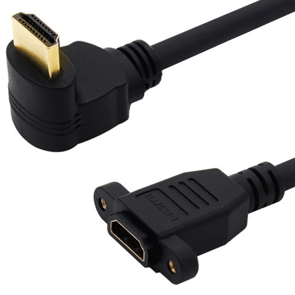 Comprar Cable de extensión macho a hembra, compatible con HDMI, 2,0 v, 4K x 2K, ángulo de 90 grados, montaje en panel con orificio para tornillo para PSP HDTV
