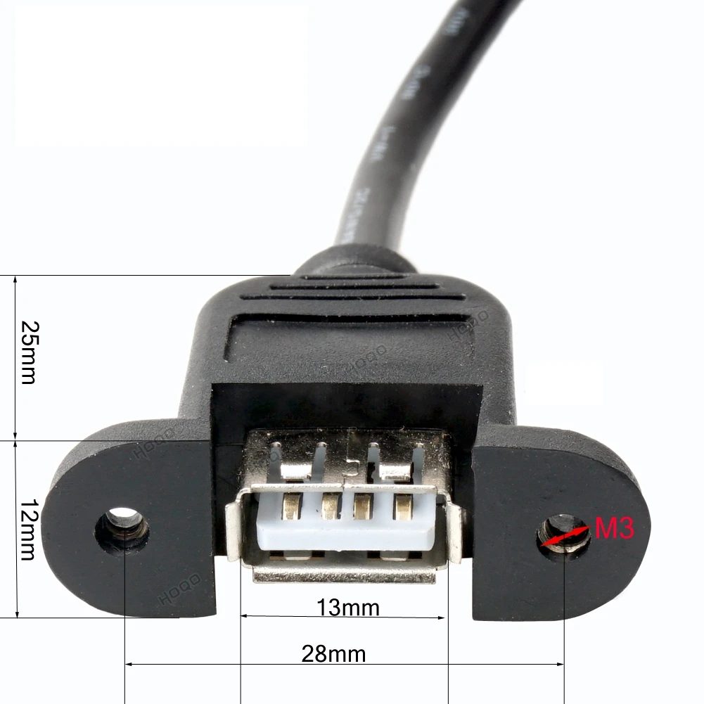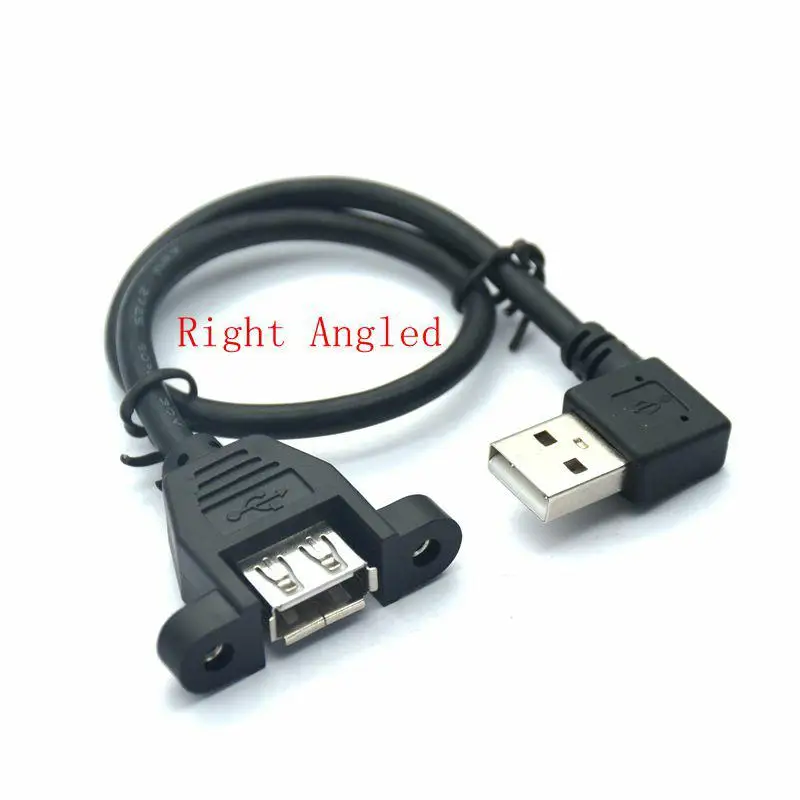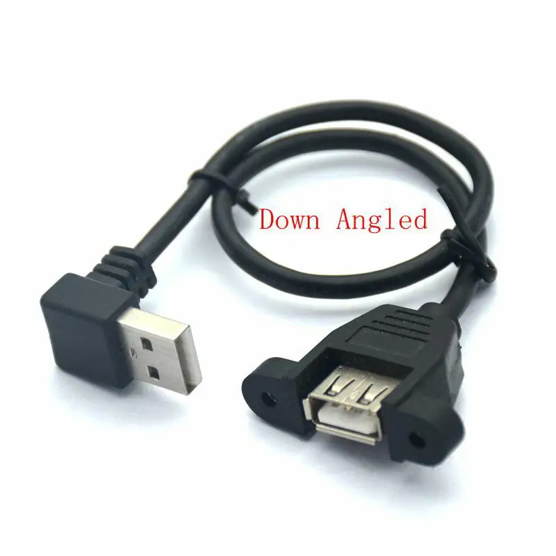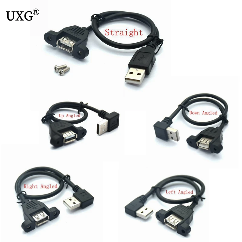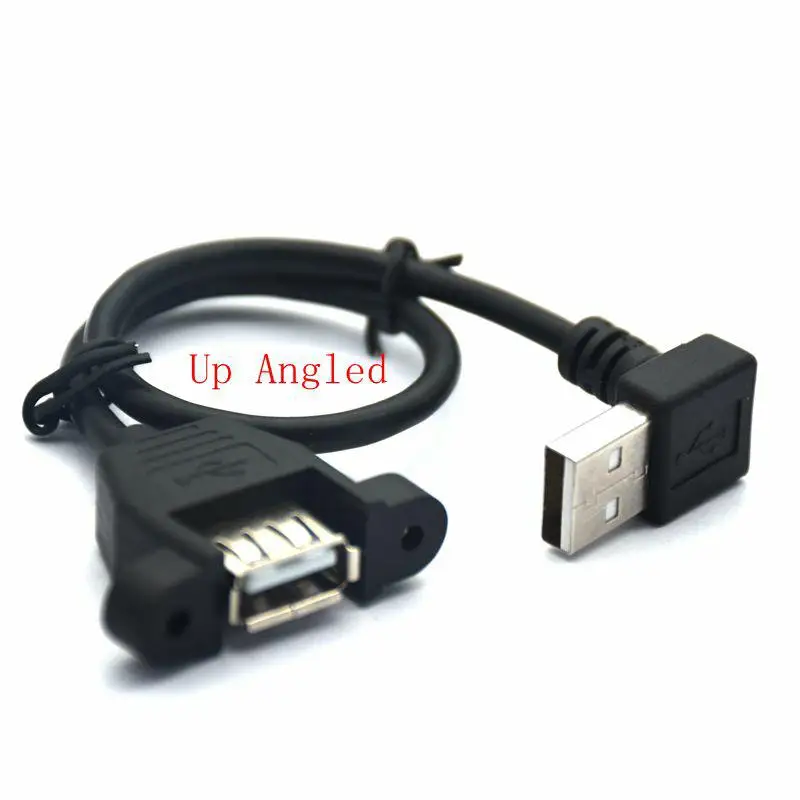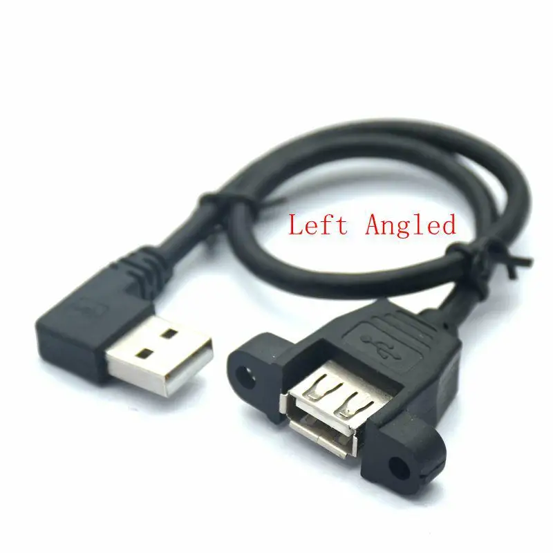 Cable de extensión de macho A hembra, Conector de bloqueo con orificio incorporado, 1 pies, 30cm, 1M, 90 grados, puerto USB tipo A, montaje de Panel USB 2,0