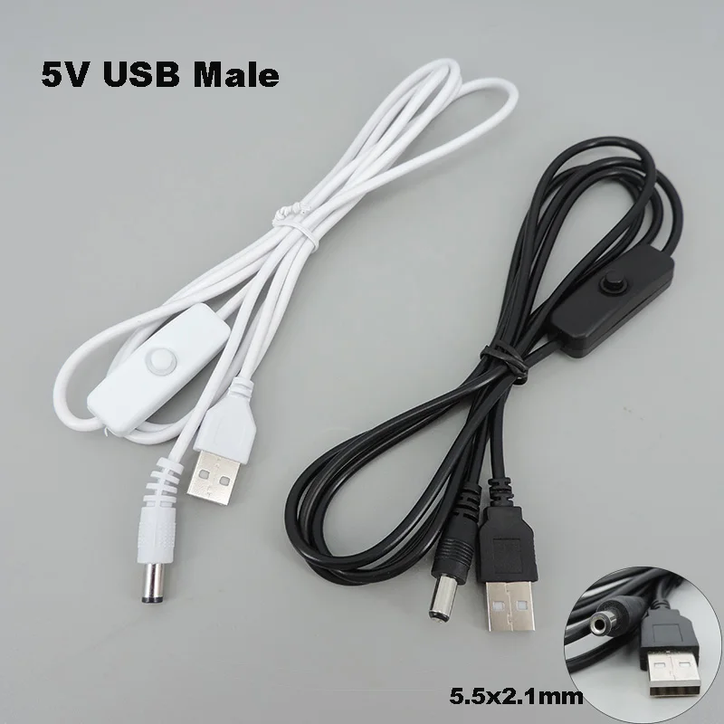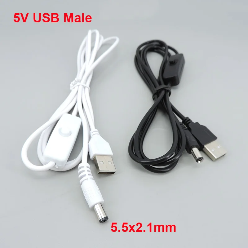 Comprar Cable de extensión macho USB de 5V CC a Cable macho de 5,5x2,1mm con botón de encendido/apagado Cable de interruptor fuente de alimentación carga 1,5 m A7