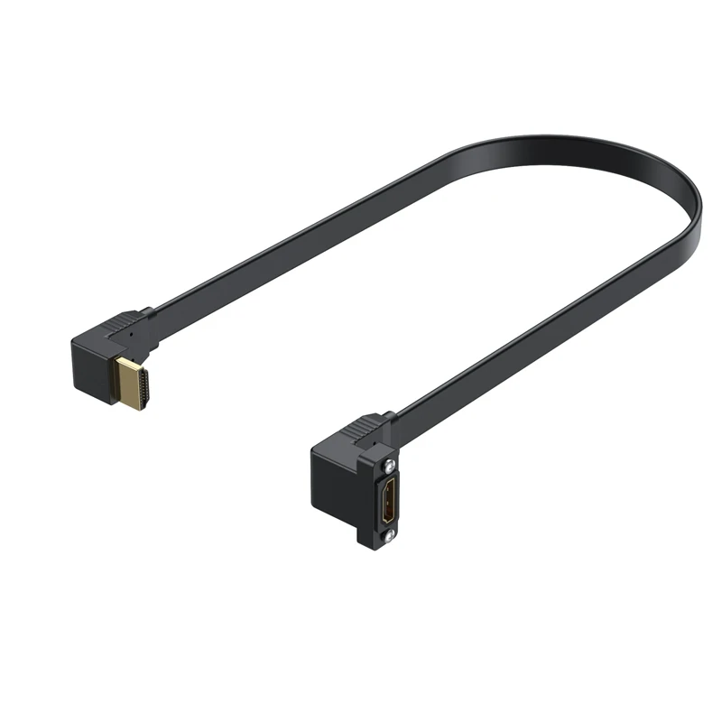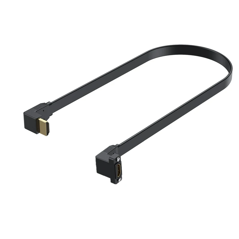 Cable de extensión HDMI 2.0 de alta velocidad, ultrafino y doble curvado, macho a hembra, con orificio para tornillo, cable de conexión de panel fijo que admite resolución 4K 60Hz, con una longitud de 50 cm;