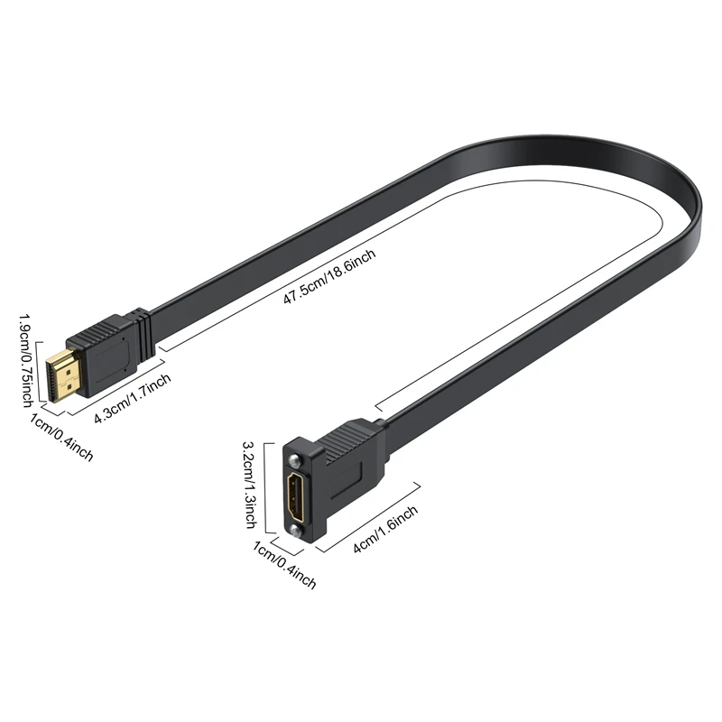 Comprar Cable de extensión macho y hembra 2,0 compatible con HDMI plano de 0,5 m y 90 grados, con instalación de Panel con orificio para tornillo, alta velocidad 4K 60Hz