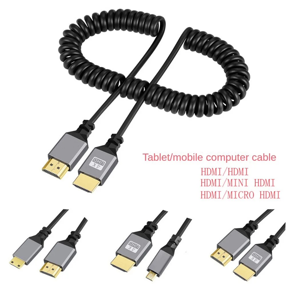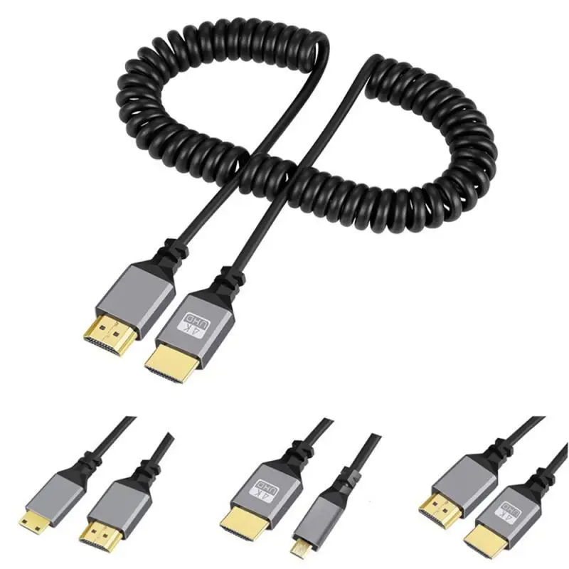 Cable de extensión de alambre de resorte compatible con Micro Mini HDMI 4K/60Hz Cable macho a macho compatible con HDMI 2,0 para HDTV /3