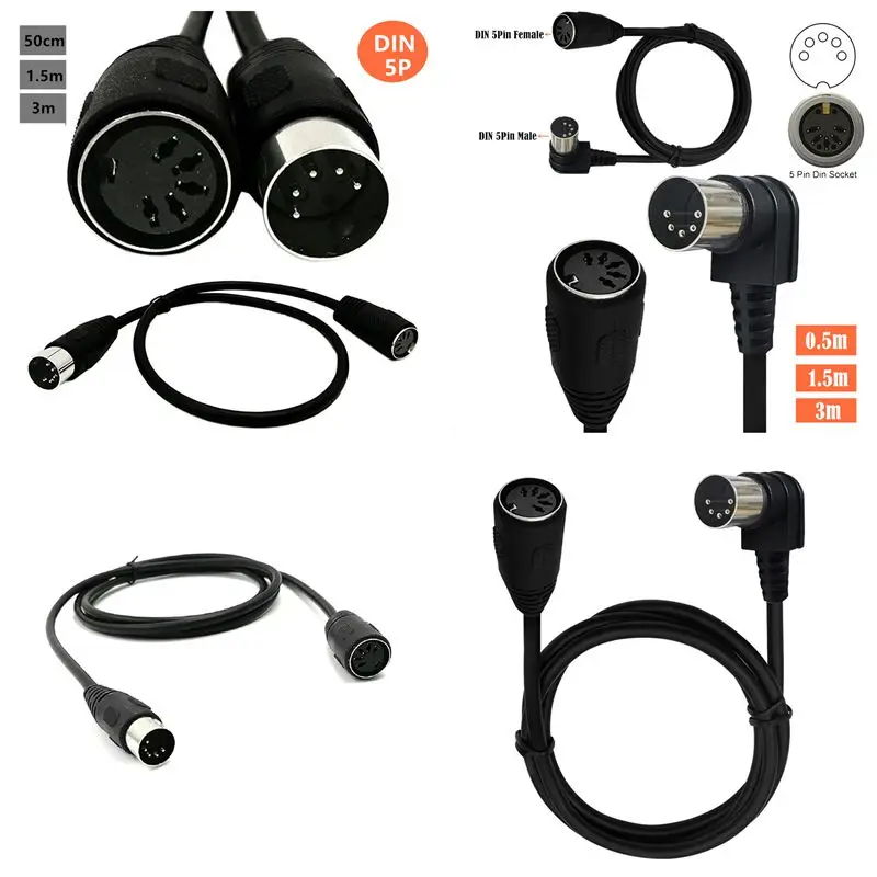 Comprar Cable de extensión MIDI DIN de 90 grados, 5 pines, DIN, macho a hembra, sintetizador de teclado, Cable de Piano eléctrico de órgano, 0,5 m, 1,5 m, 3m