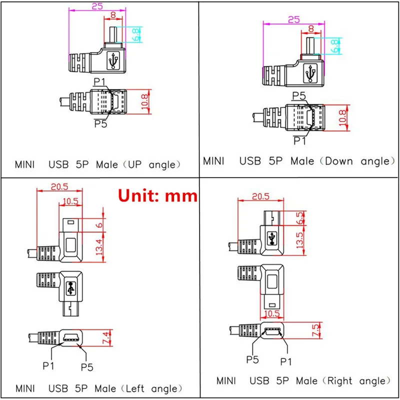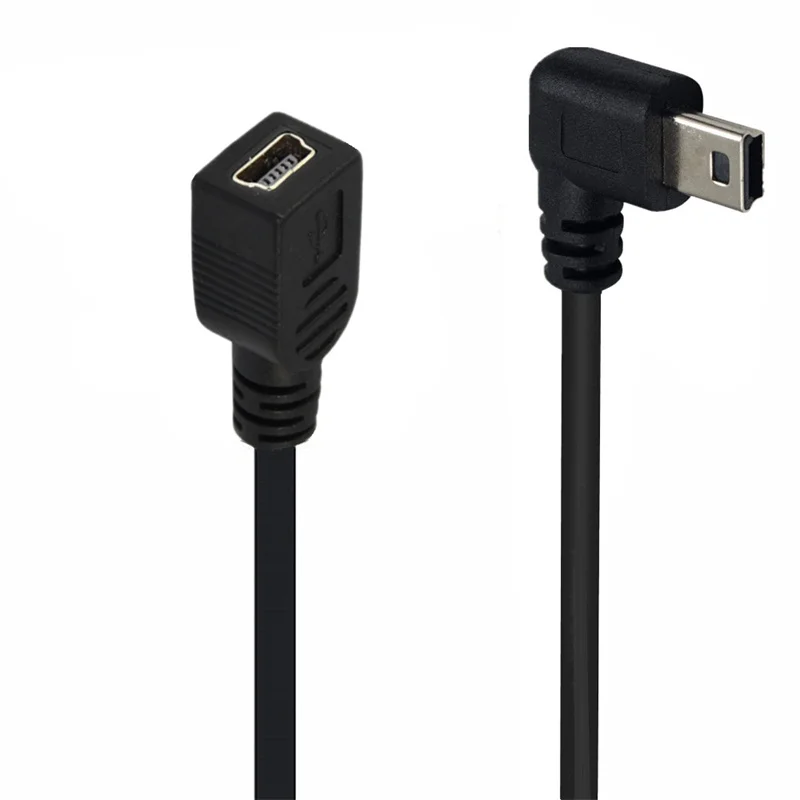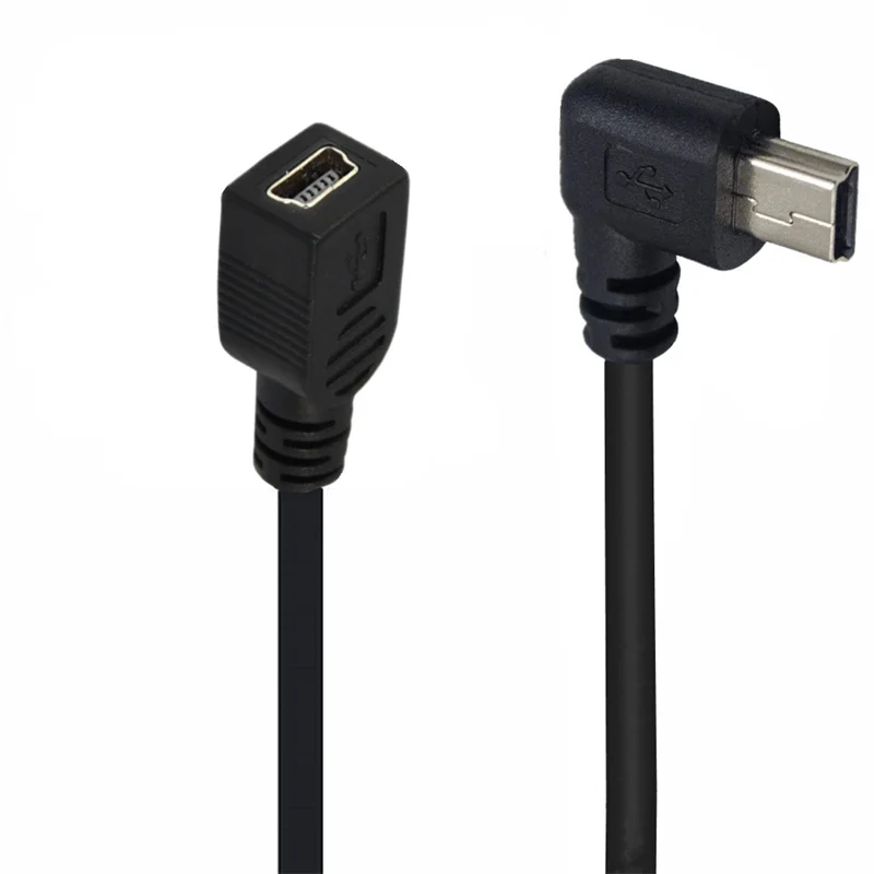 Comprar Cable de extensión Mini USB 2,0 macho a hembra para receptor GPS, 25CM, 90 grados, ángulo derecho, Izquierdo, arriba y abajo, 5 pines