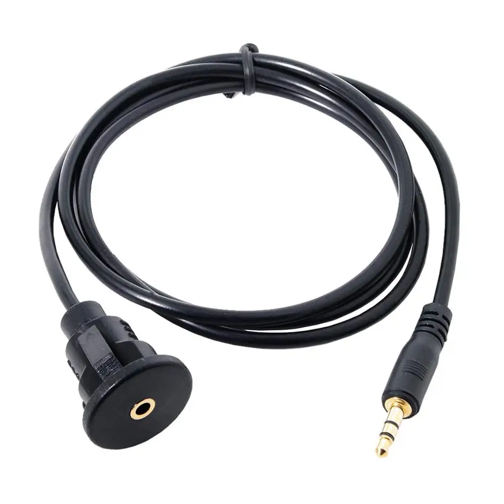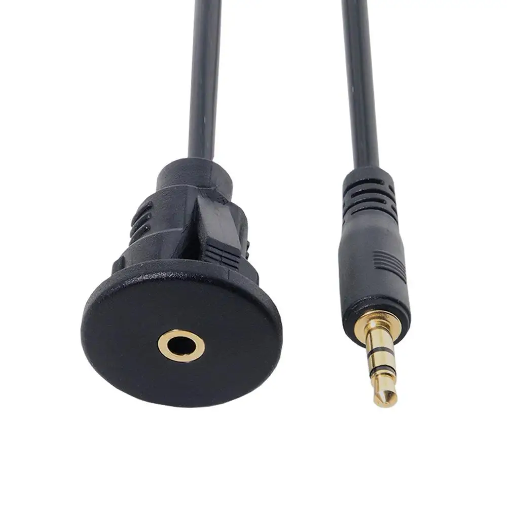 Descripción del producto 3,5mm macho a 3,5mm hembra coche camión salpicadero impermeable montaje empotrado 3,5mm 1/8 "AUX Audio Jack Cable de extensión con Panel de montaje para coche barco y motocicleta este batige práctico montaje 3,5mm (1/8) la extensión se puede utilizar para proporcionar un montaje empotrado en su tablero u otra superficie. Alternativamente, use el soporte proporcionado para montarlo en cualquier superficie adecuada. Este soporte de extensión batige de 3,5mm está diseñado para su uso en automóviles/barcos/Bicicletas/remolques y es compatible con cualquier estéreo para automóviles, barcos o bicicletas equipados con una entrada auxiliar de 3,5mm. Características: funciona con vehículos con entrada auxiliar de 3,5mm diseñada para automóviles, pero se puede usar para cualquier aplicación, use un orificio existente o Corte un orificio en su tablero y sujételo en el enchufe para montarlo al ras salpicadero de su vehículo. Soporte incluido para permitir el montaje del enchufe en el salpicadero de su coche. Cable de aproximadamente 1m/ 2m de largo. Se puede conectar a cualquier estéreo de coche equipado con una entrada AUX. Opciones de montaje: 1. Montaje al ras del enchufe en el salpicadero u otra superficie 2. Montaje en el tablero usando el soporte y los tornillos (ver imagen). Se puede conectar a cualquier estéreo de coche equipado con una entrada auxiliar. \