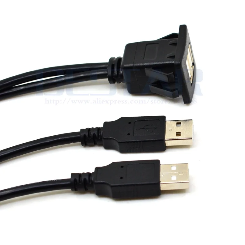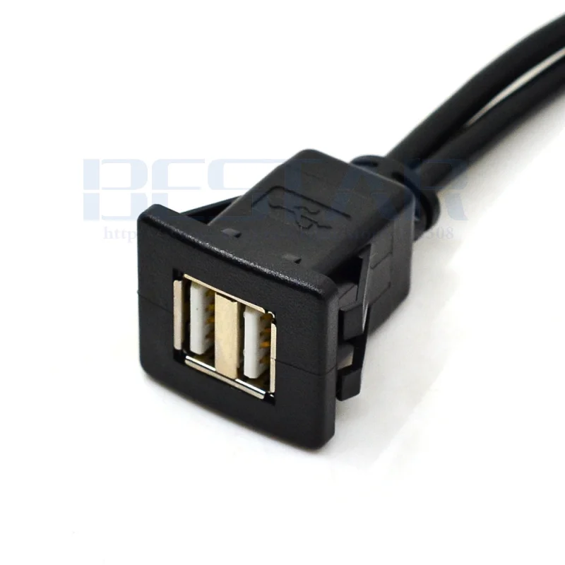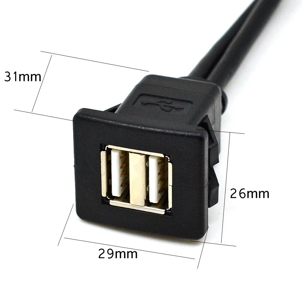 Cable de extensión de montaje empotrado de Panel USB 2,0 cuadrado de puertos duales con hebilla para salpicadero de motocicleta, camión, barco, 3 pies y 1 m
